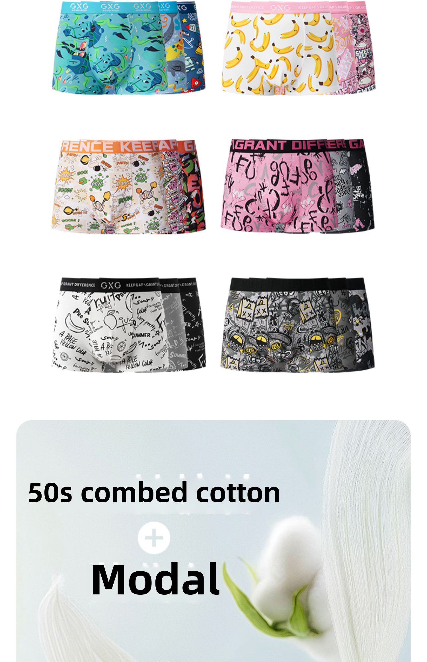 [Серия принтов] Мужское нижнее белье Gxg [3 шт.] Нижнее белье из модального хлопка с принтом для мальчиков, розовые шорты