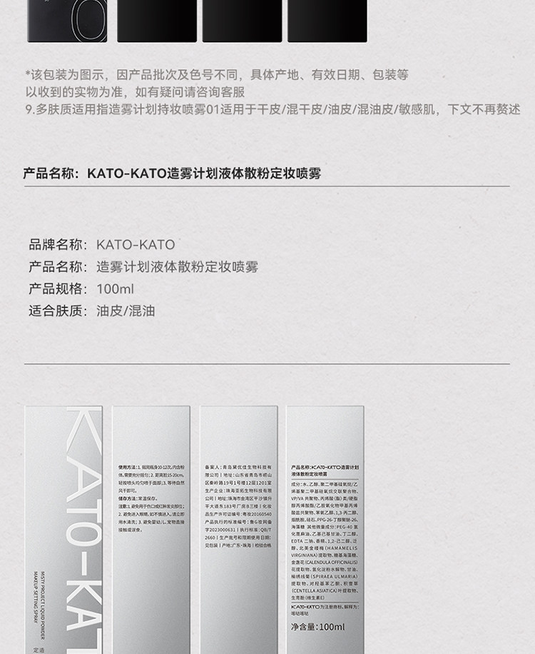 KATO Фиксатор макияжа, водостойкая рассыпчатая пудра для жирной кожи, база под макияж, длительный контроль жирности, защищает от пота