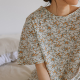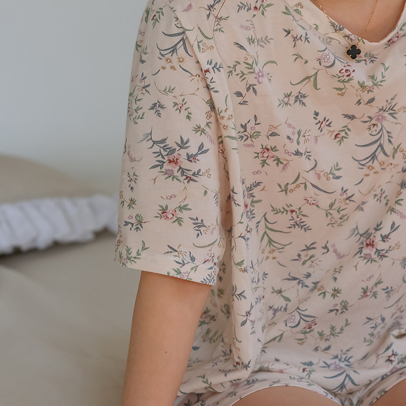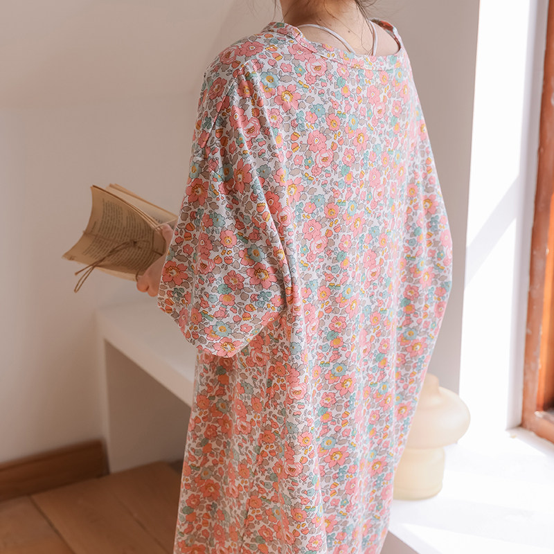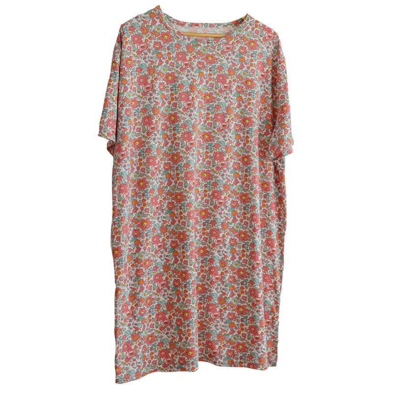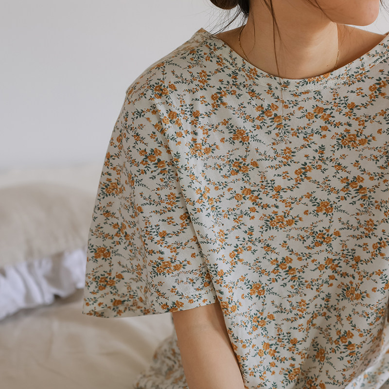 Трикотажные цветочные композиции, летняя хлопковая длинная милая тонкая пижама, короткий рукав, средней длины, цветочный принт