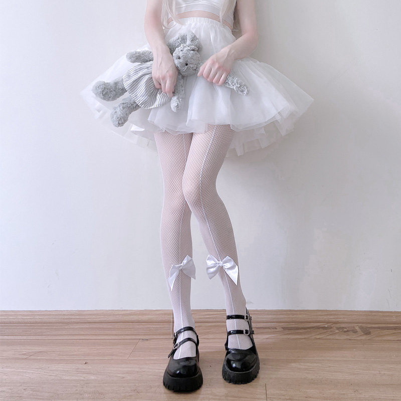 Белая рыболовная сеть с бантиком, колготки, сексуальные милые универсальные летние тонкие носки, стиль Лолита, популярно в интернете