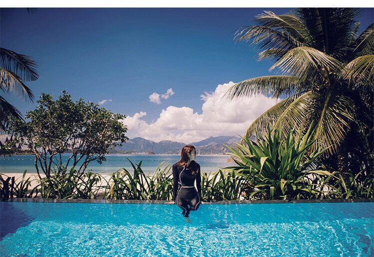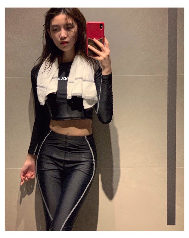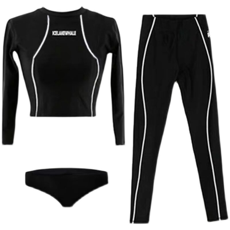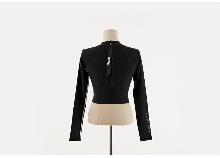Черный цветной лонгслив, быстросохнущий купальник, популярно в интернете, высокая талия, защита от солнца, по фигуре
