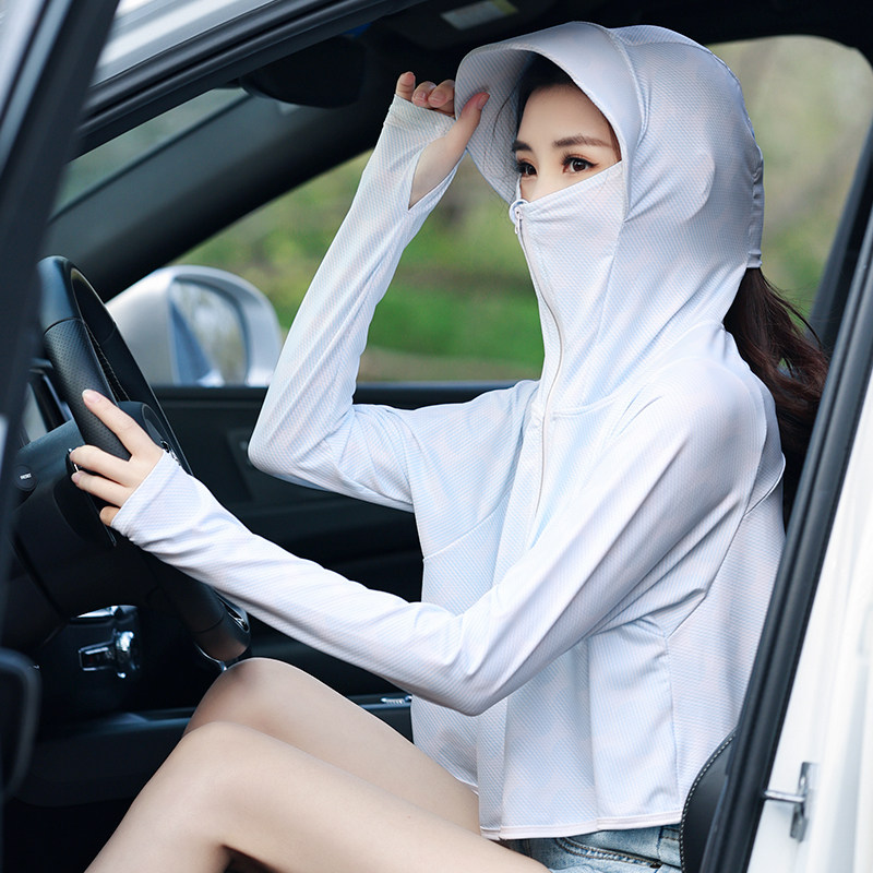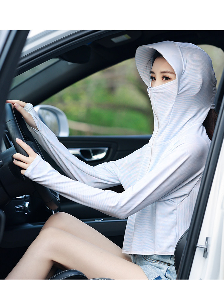 Электромобиль с капюшоном, дышащая одежда для защиты от солнца, шелковый лонгслив, маска, с защитой шеи, УФ-защита