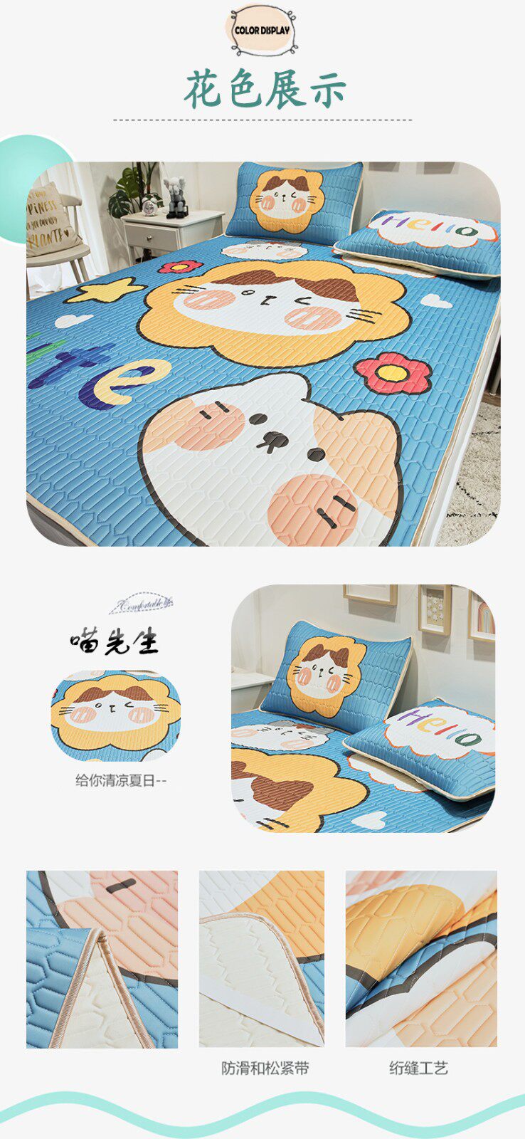 Латексный коврик, летний шелковый комплект для школьников и студентов, Таиланд, 3 предмета, можно стирать