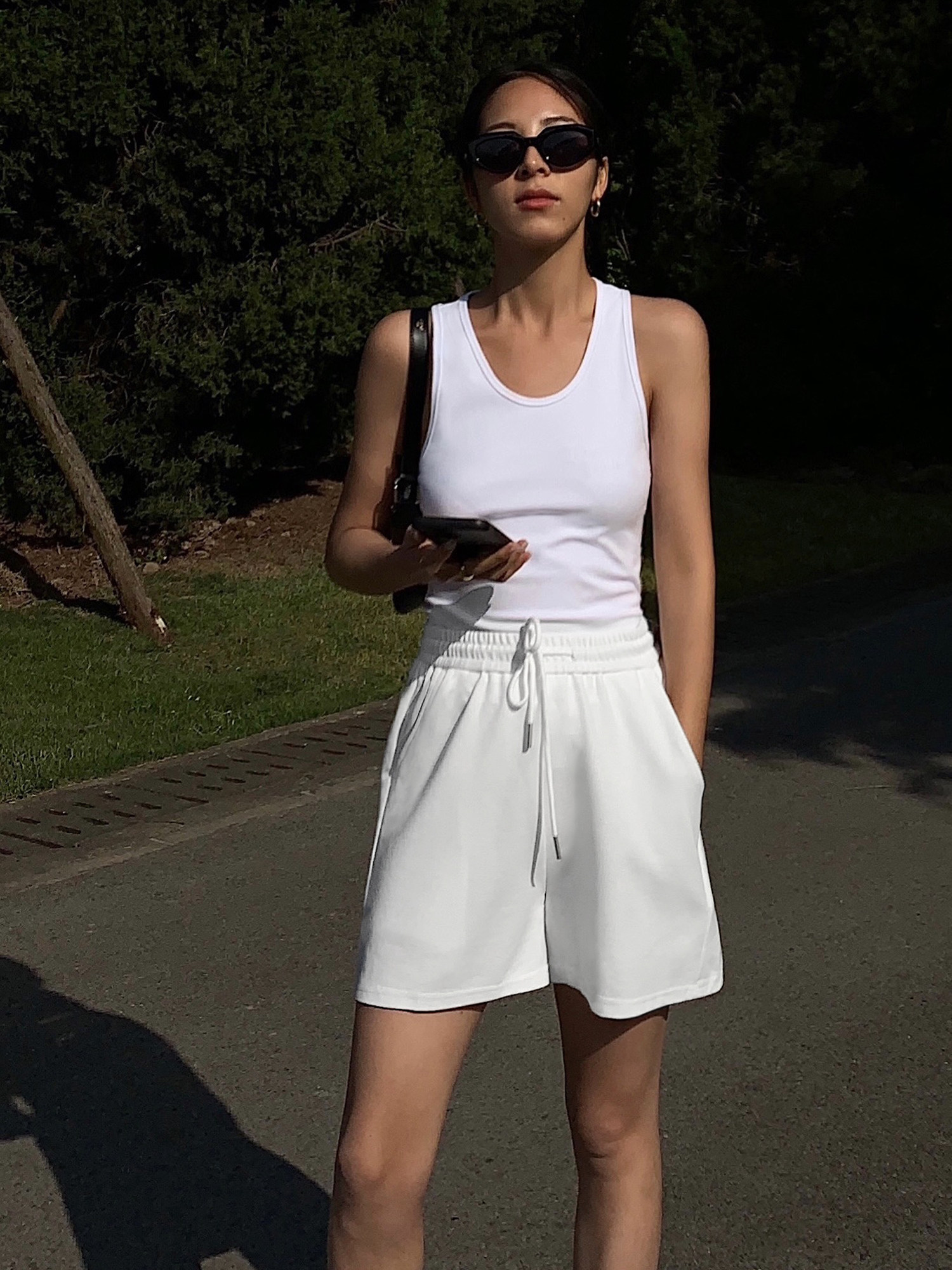 Черные летние шорты для отдыха, штаны, в корейском стиле, свободный прямой крой