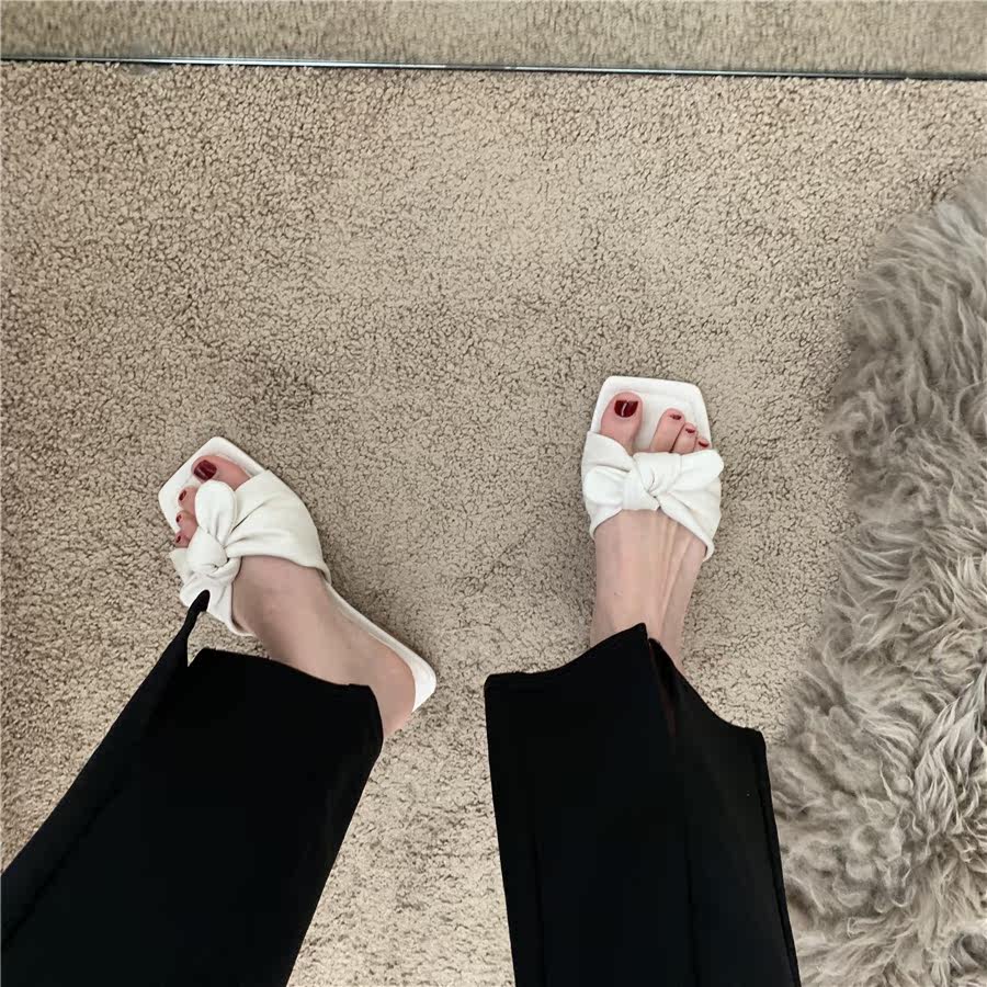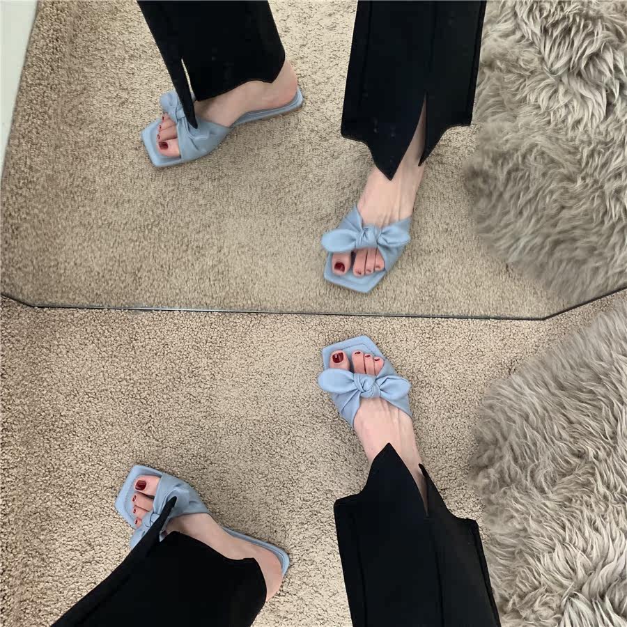 Плоские подошва слайдеры с бантиком, весенняя обувь, летние универсальные тапочки, французский стиль, 2021 года