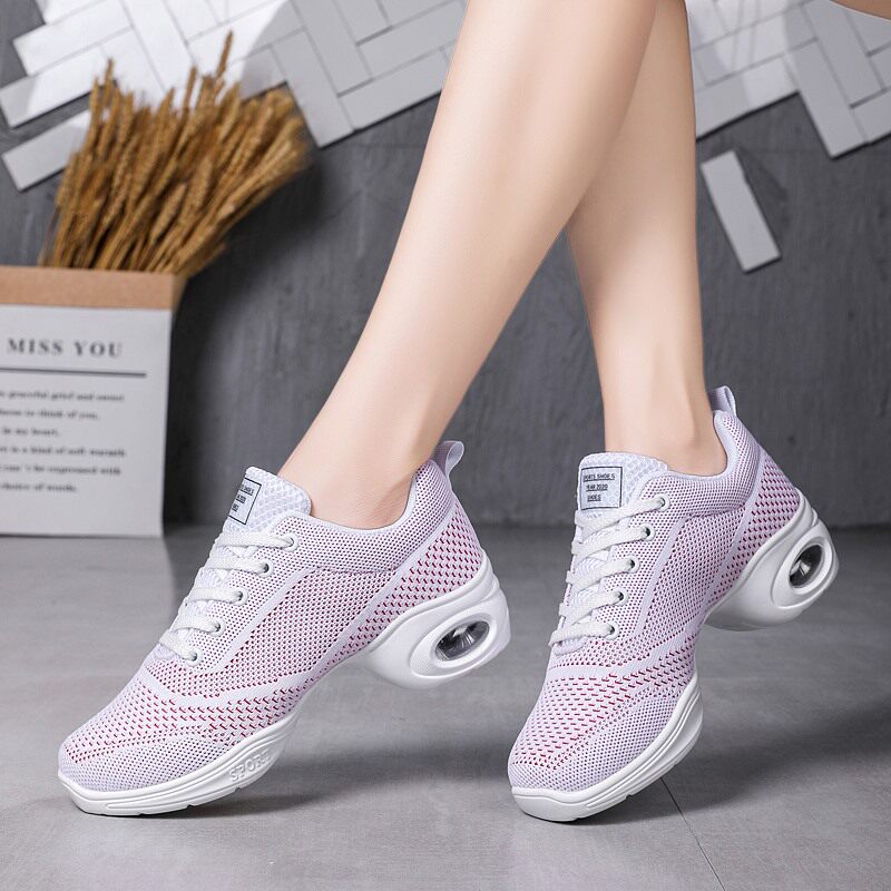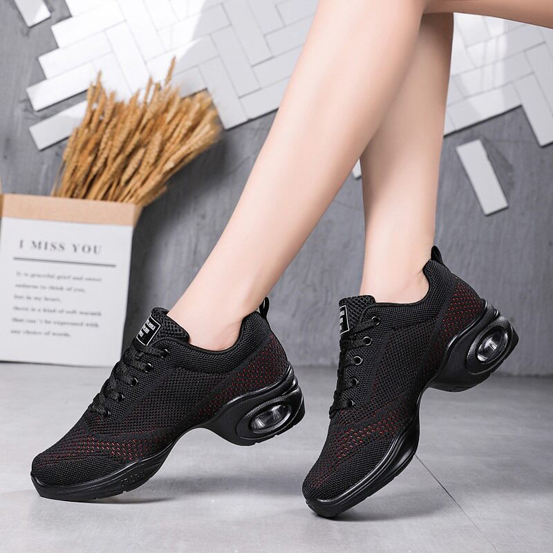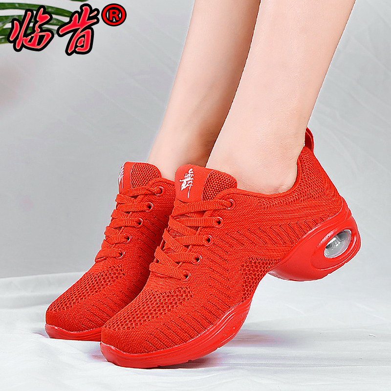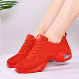 Красные танцевальные туфли для женщин, весенне-осенние сетчатые дышащие туфли для взрослых на мягкой подошве, женские туфли на среднем каблуке для современных танцев