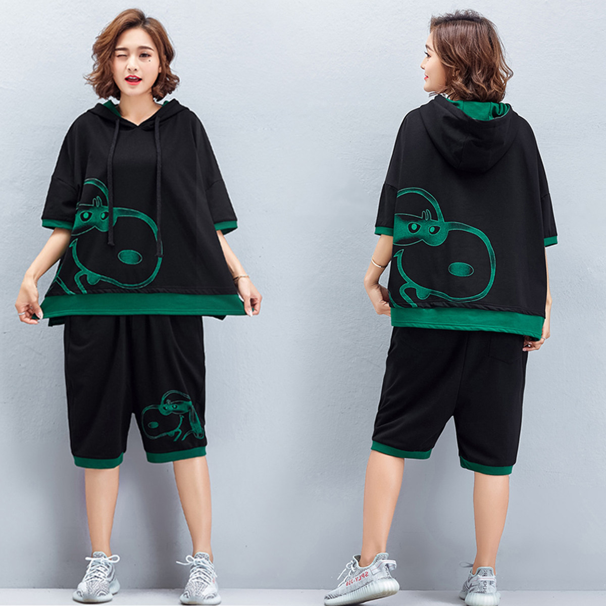 Модная летняя одежда, мультяшный комплект, спортивный костюм, сезон 2021, большой размер