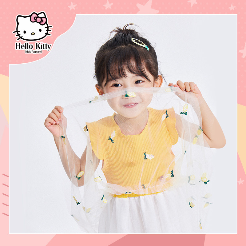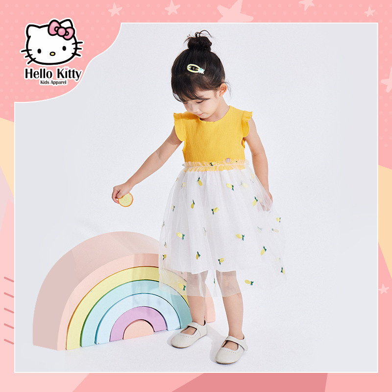 Hello Kitty, летняя одежда для отдыха, трикотажное трикотажное платье, детская одежда, сезон 2021