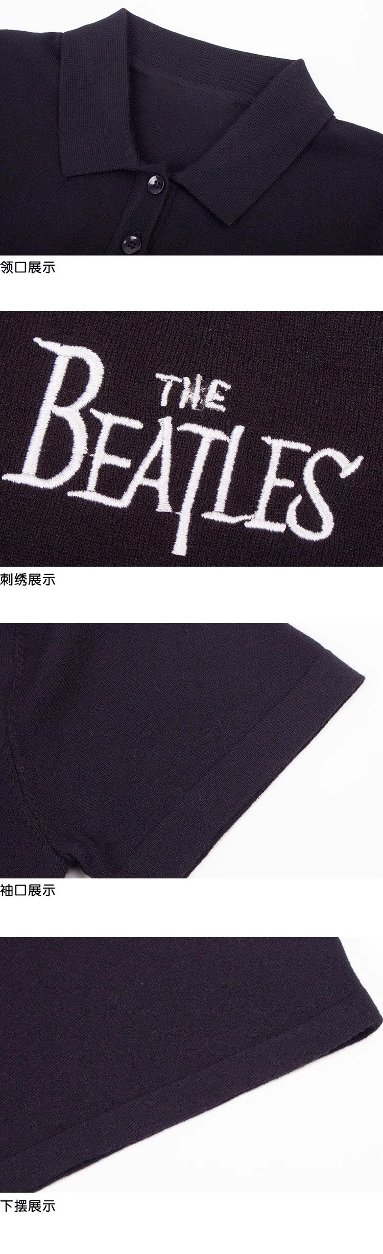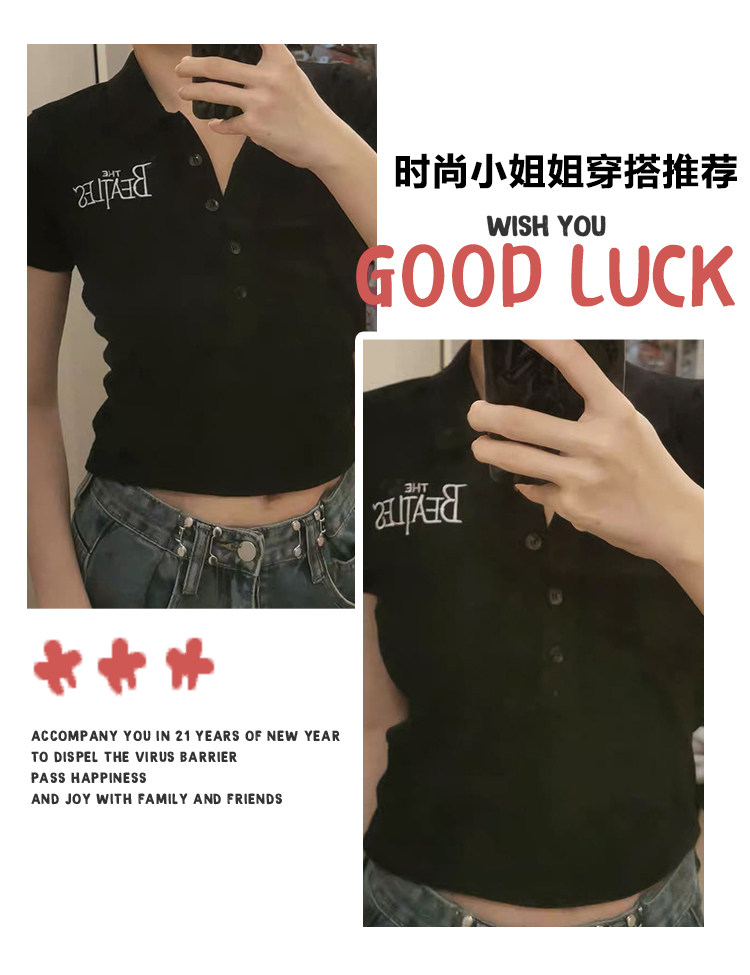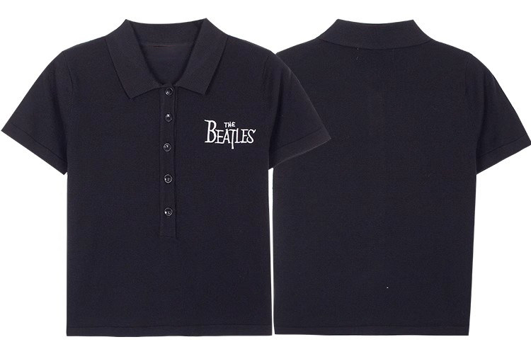 Ретро черная трикотажная футболка с коротким рукавом, воротник поло