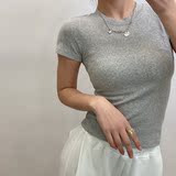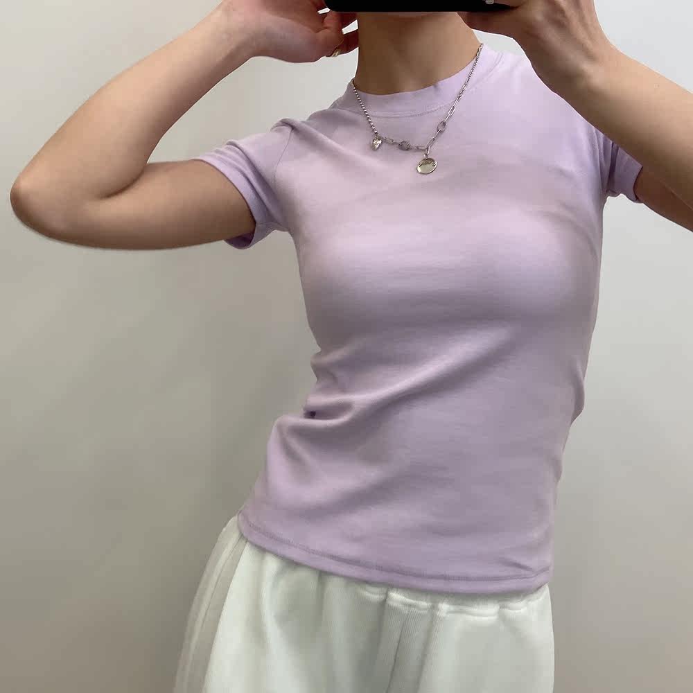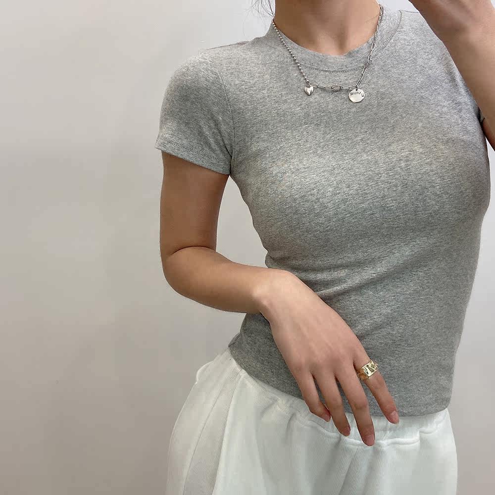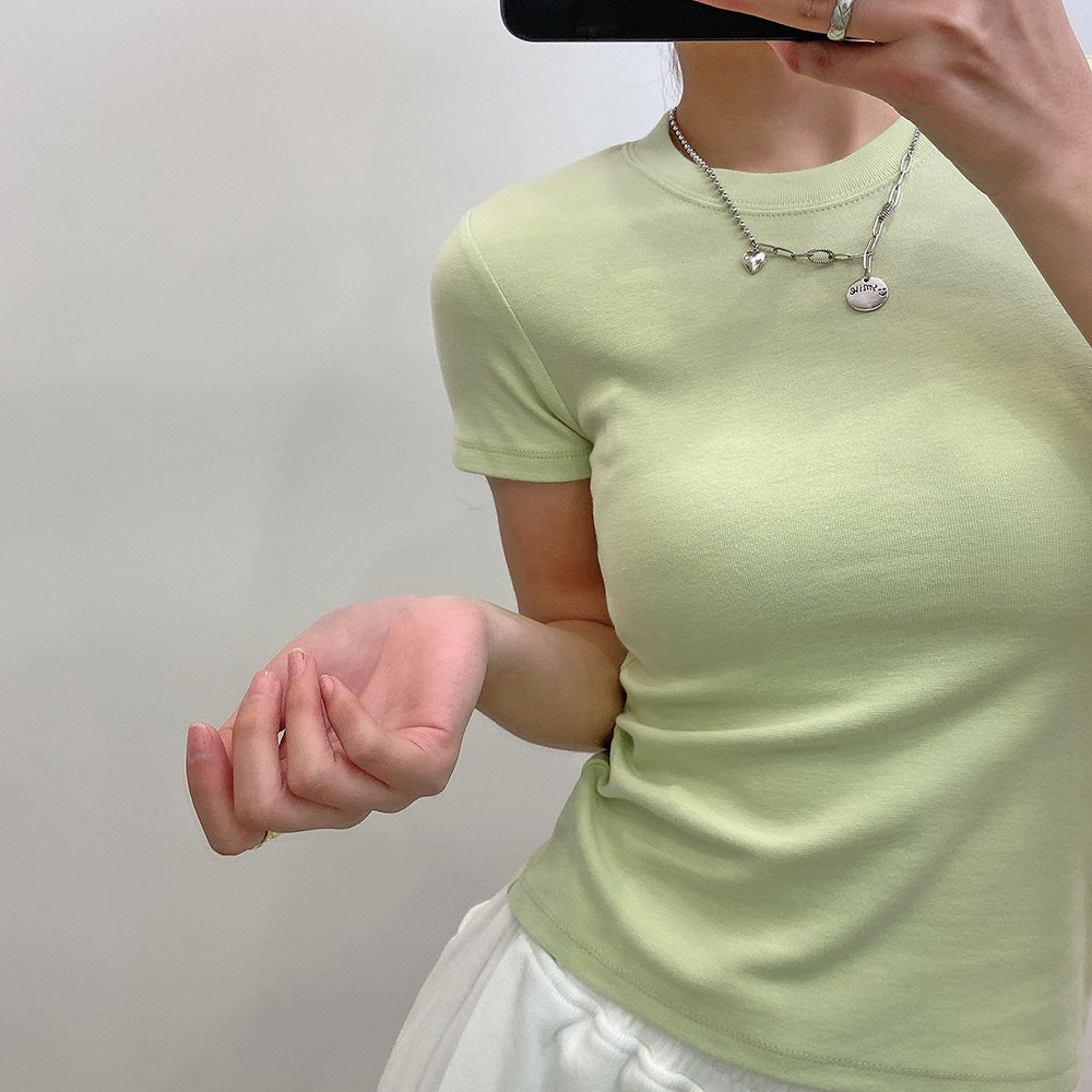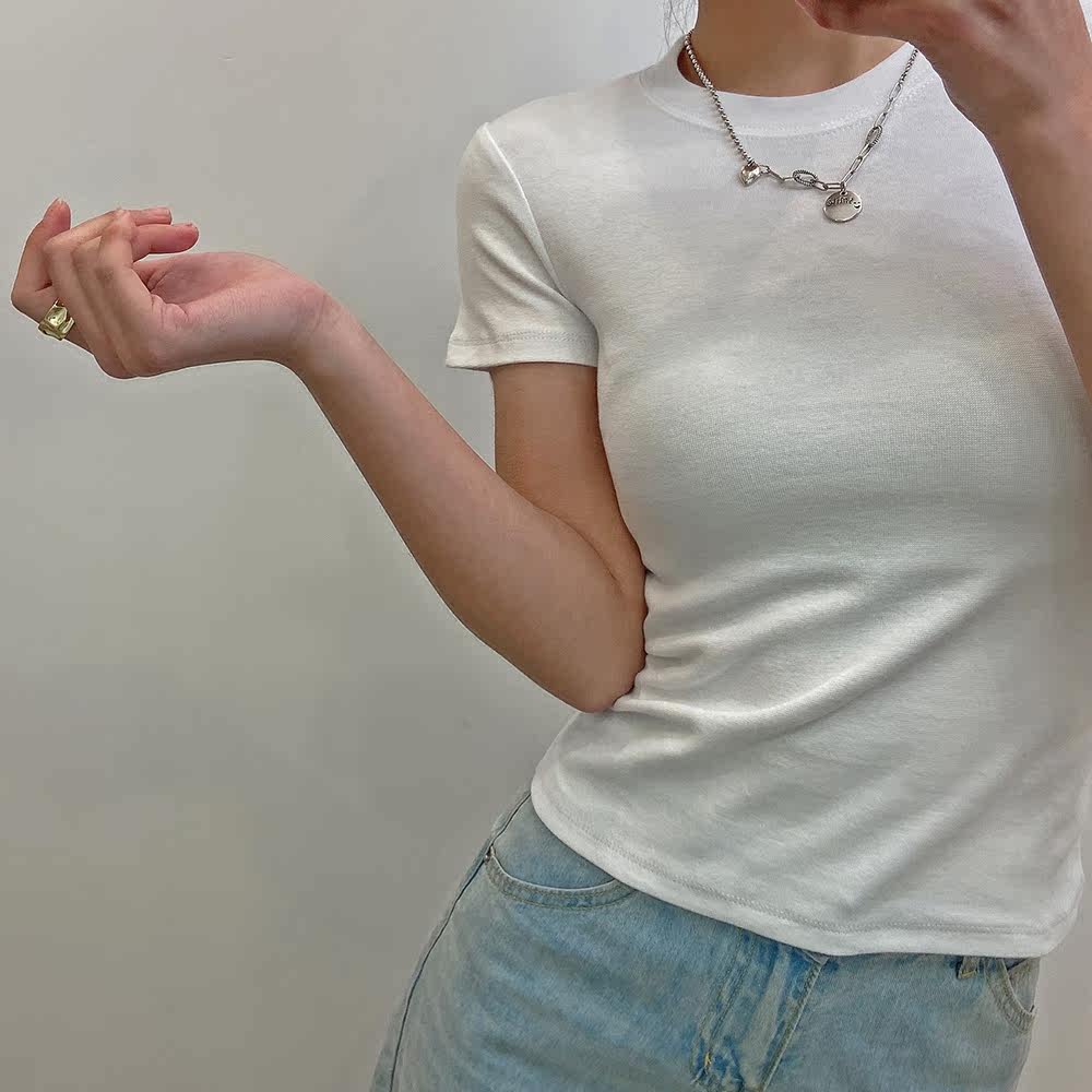 Японская короткая приталенная освежающая базовая футболка с круглым воротником