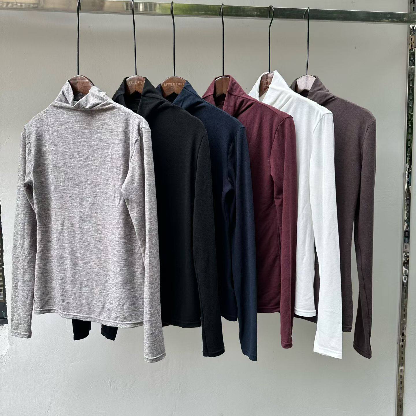 Модель сотрудничества/женская смешанная футболка с высоким воротником/термоодежда с длинными рукавами, эластичная рубашка с тонким низом 478954 471601