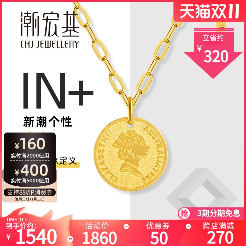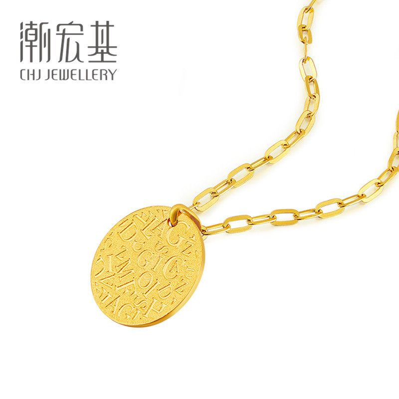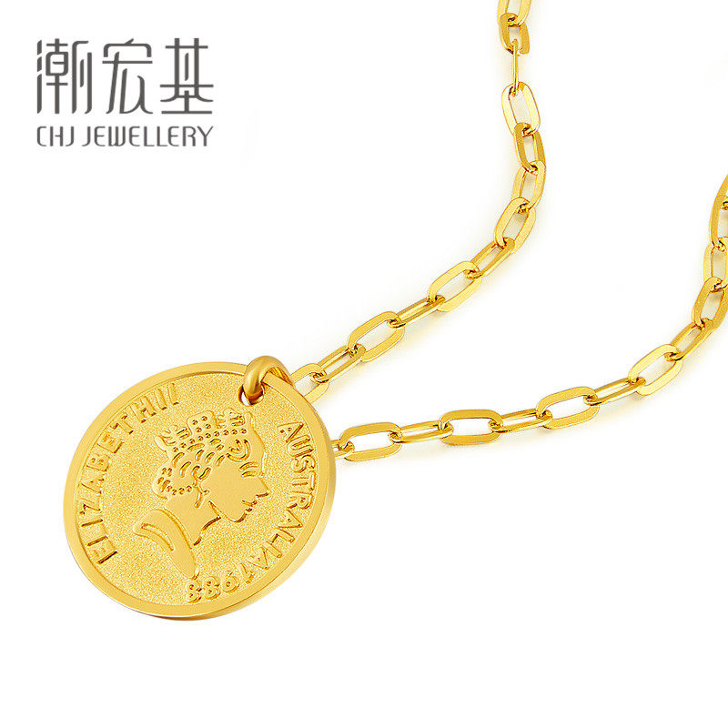 Tide Hongji In+серия золотой подвесной монеты Retro Round Brand Gold 5G Aurora Gold без цепи 丷