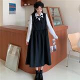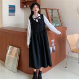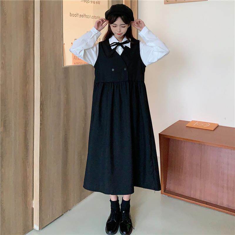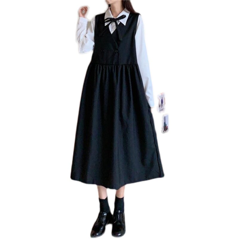 Осенняя милая ретро рубашка, универсальные подтяжки, платье, комплект для школьников и студентов, в корейском стиле