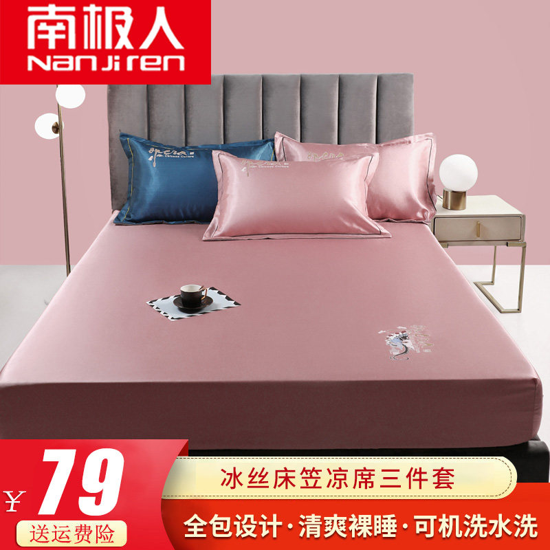 Шелковая простыня, покрывало, комплект, матрас, нескользящие накладки, летний коврик, 3 предмета, фиксаторы в комплекте, можно стирать