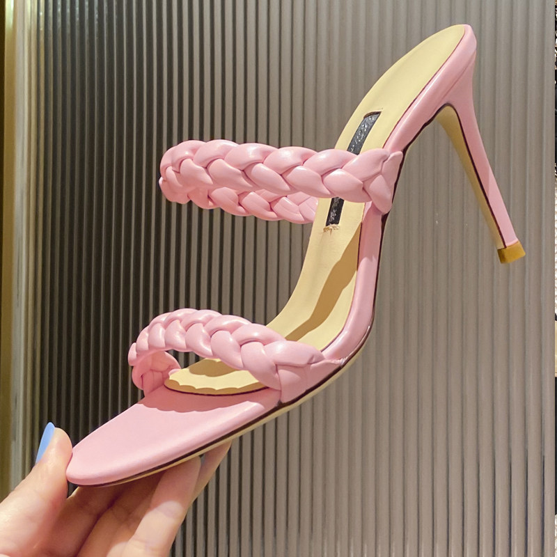 Tide, сексуальные плетеные сандалии на высоком каблуке, европейский стиль, из натуральной кожи, популярно в интернете