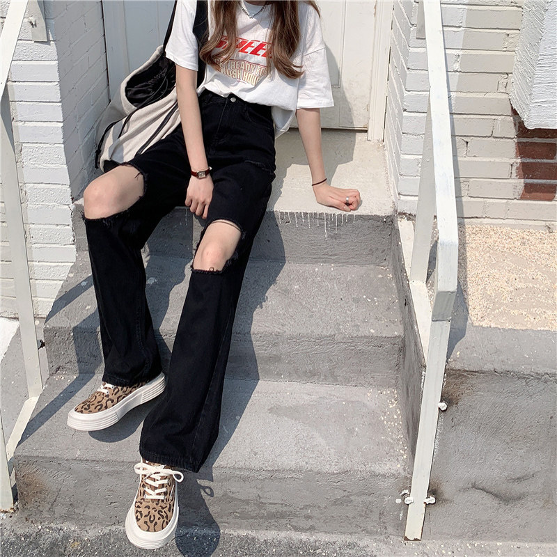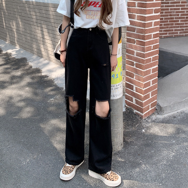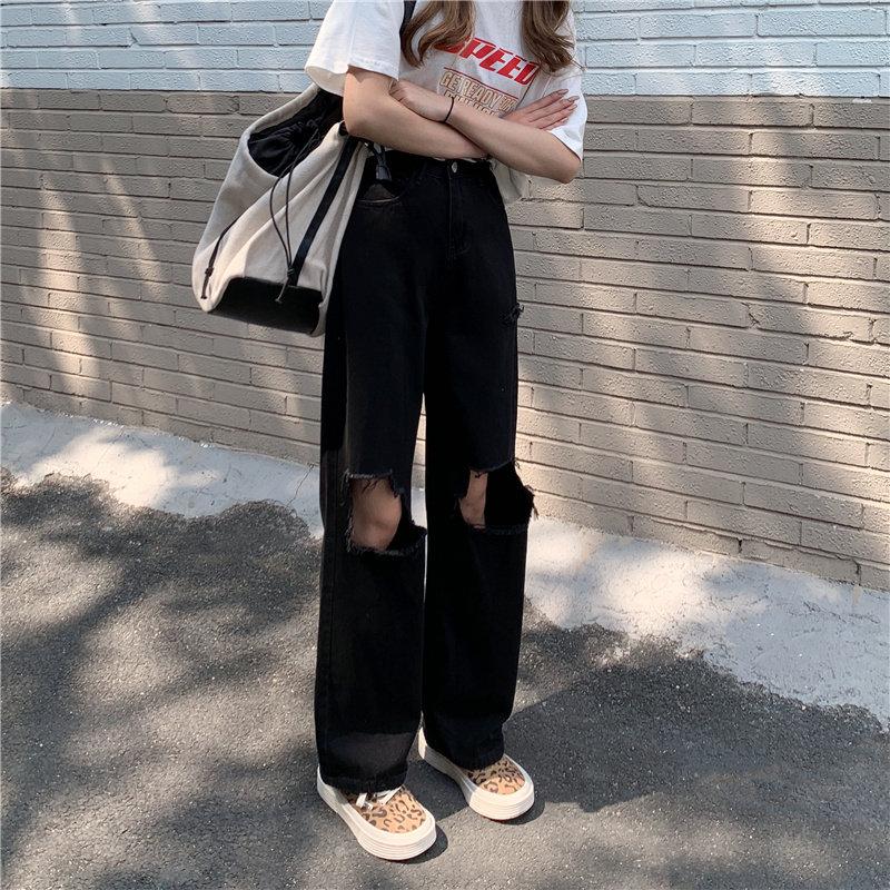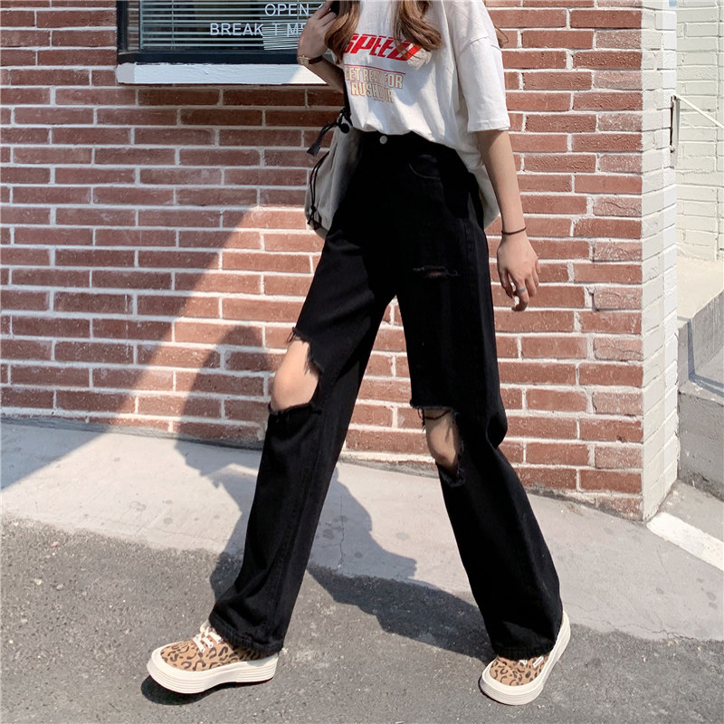 Черные джинсы, штаны, 2021 года, свободный прямой крой, большой размер