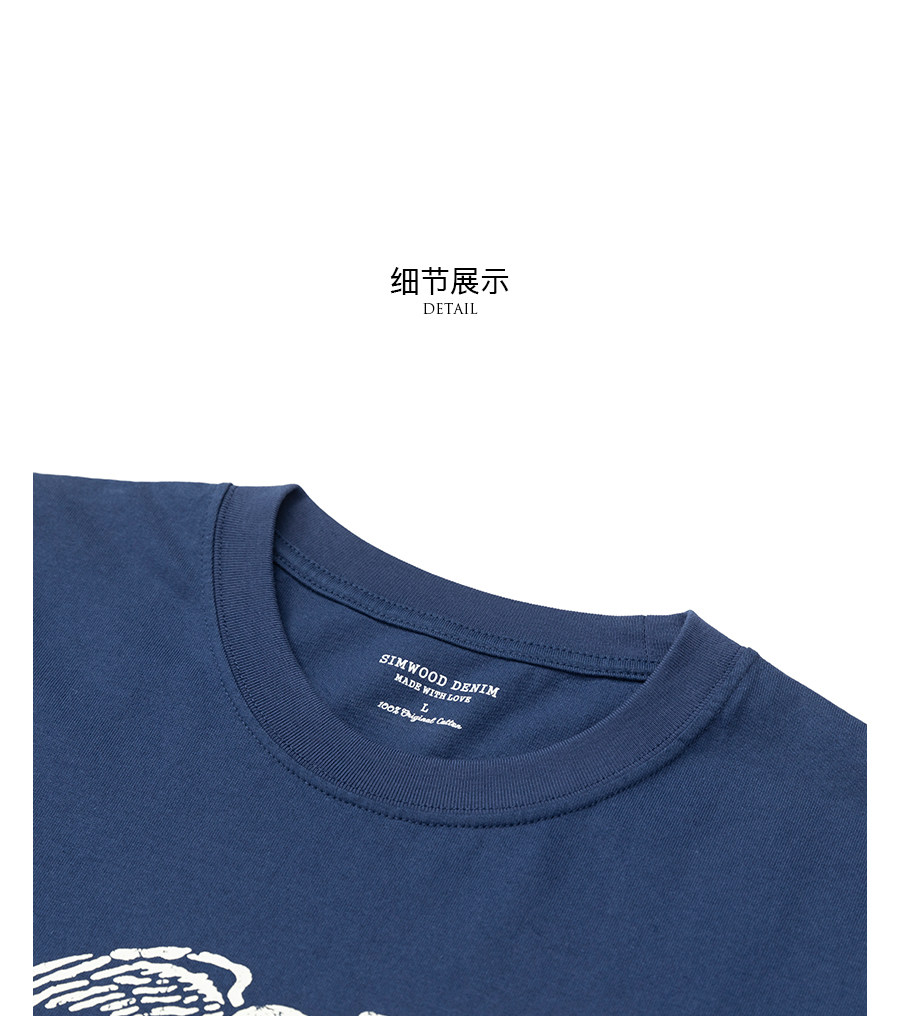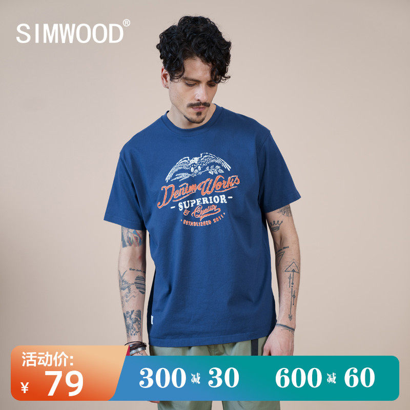 Simwood Летняя хлопковая футболка с коротким рукавом с круглым воротником, свободный крой, сезон 2021