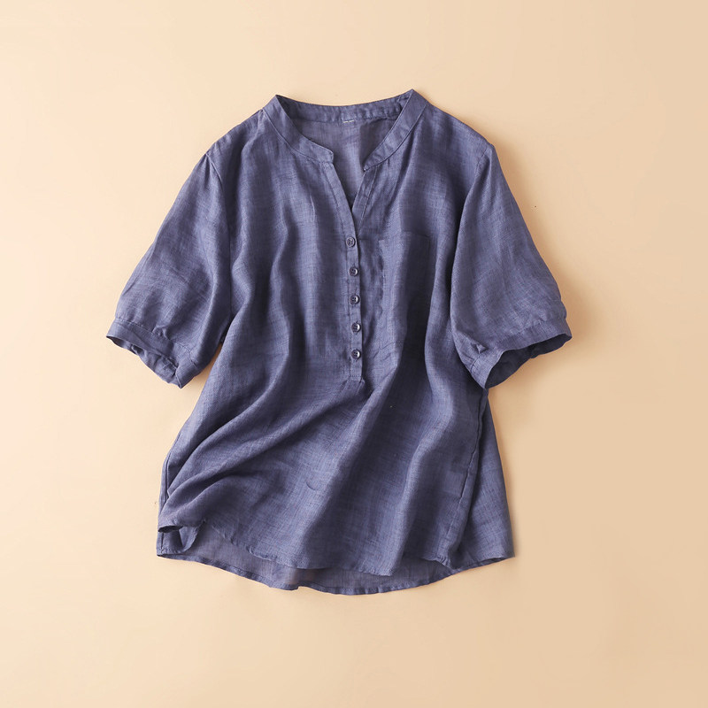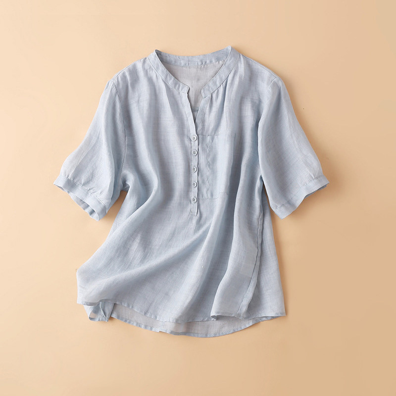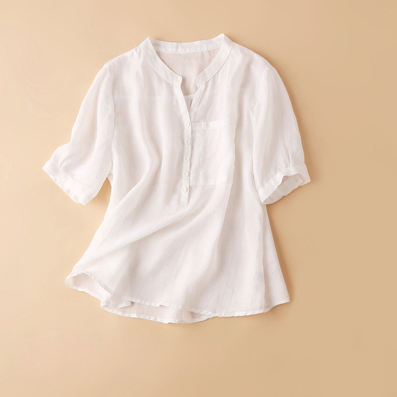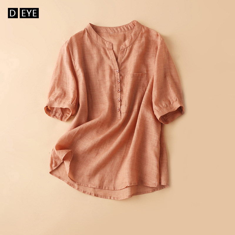 Летняя легкая и тонкая розовая рубашка, из хлопка и льна, короткий рукав