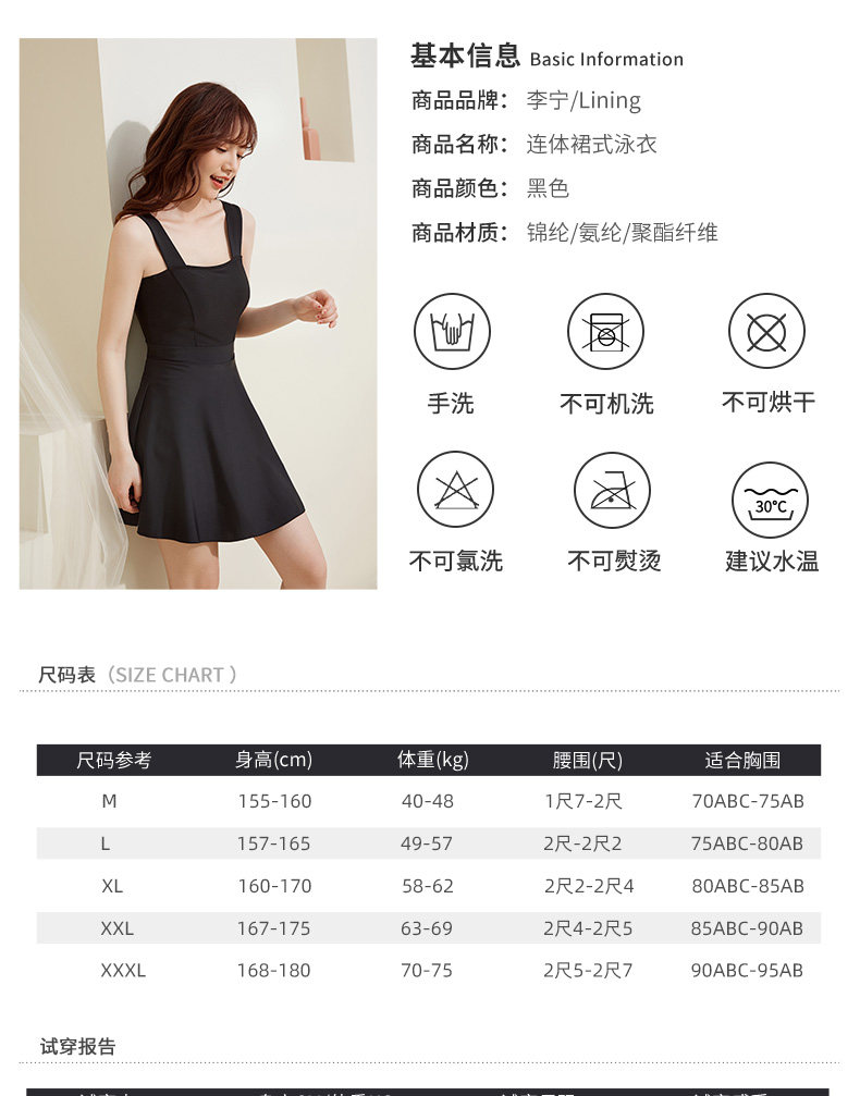 Li Ning, летний купальник, юбка, большой размер