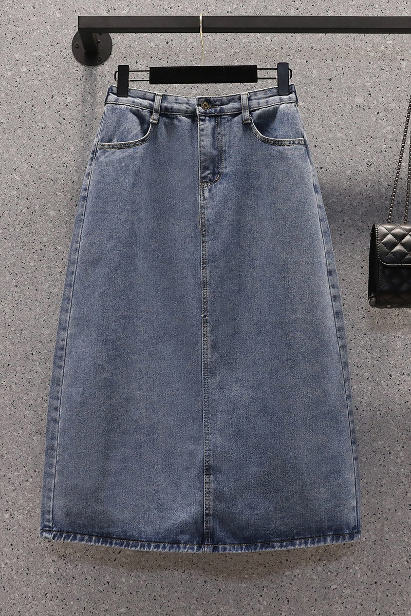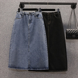Летняя джинсовая длинная джинсовая юбка, большой размер, подходит для полных девушек, высокая талия, А-силуэт, с акцентом на бедрах