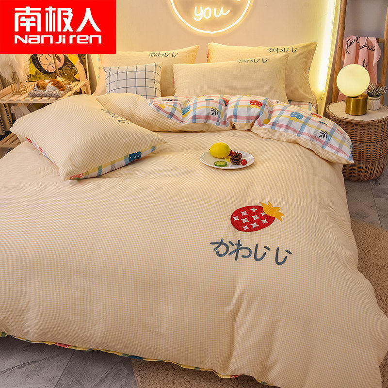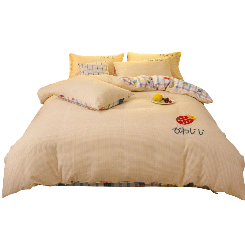 Хлопковый мультяшный комплект, простыня, пододеяльник, покрывало для школьников и студентов, с вышивкой, 4 предмета