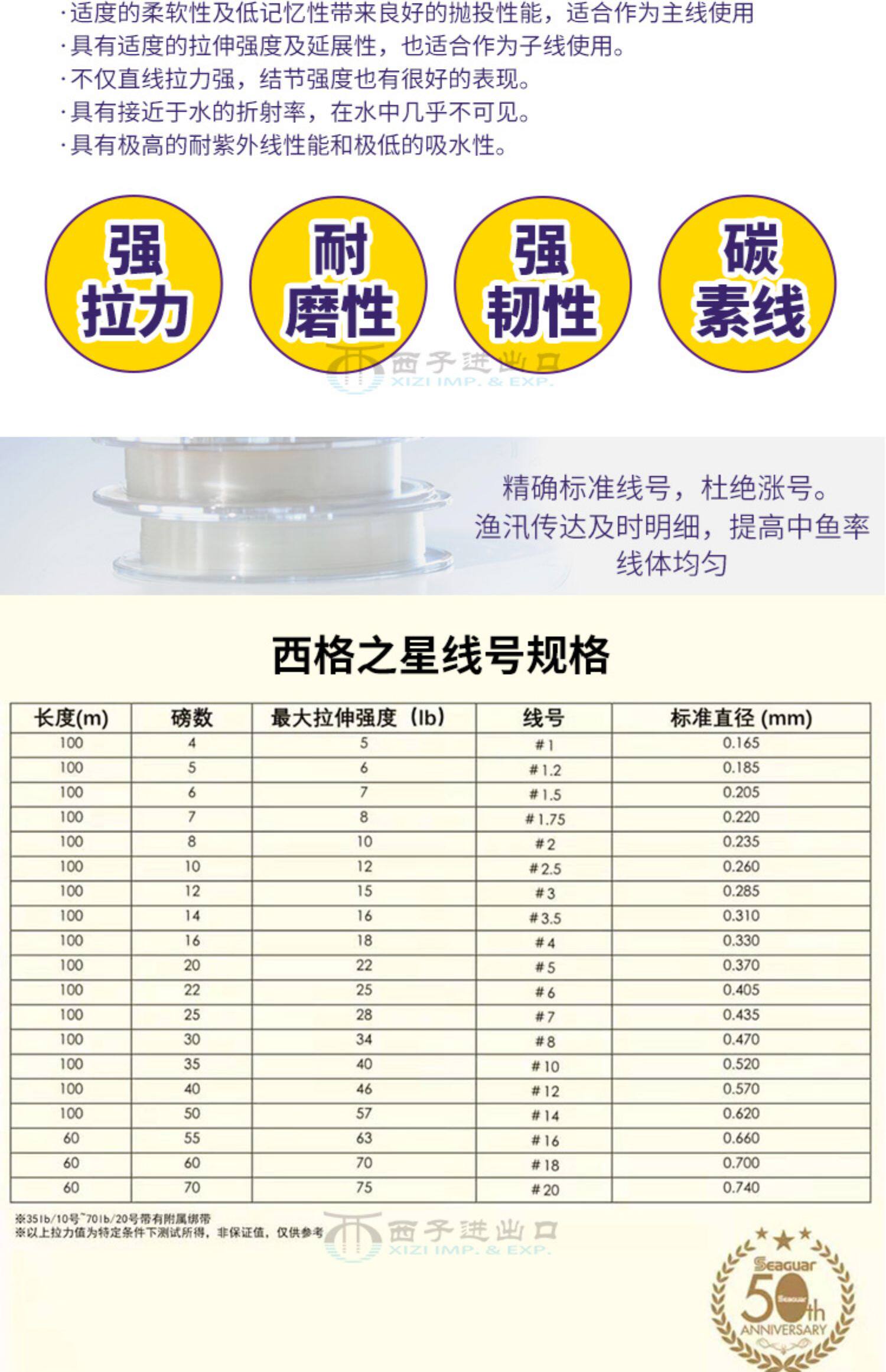 50 -летие 50 -летия углеродной линии Seuguar Sguar, Gong Lei рекомендует фронтальную линию фторуглеродной линии азо