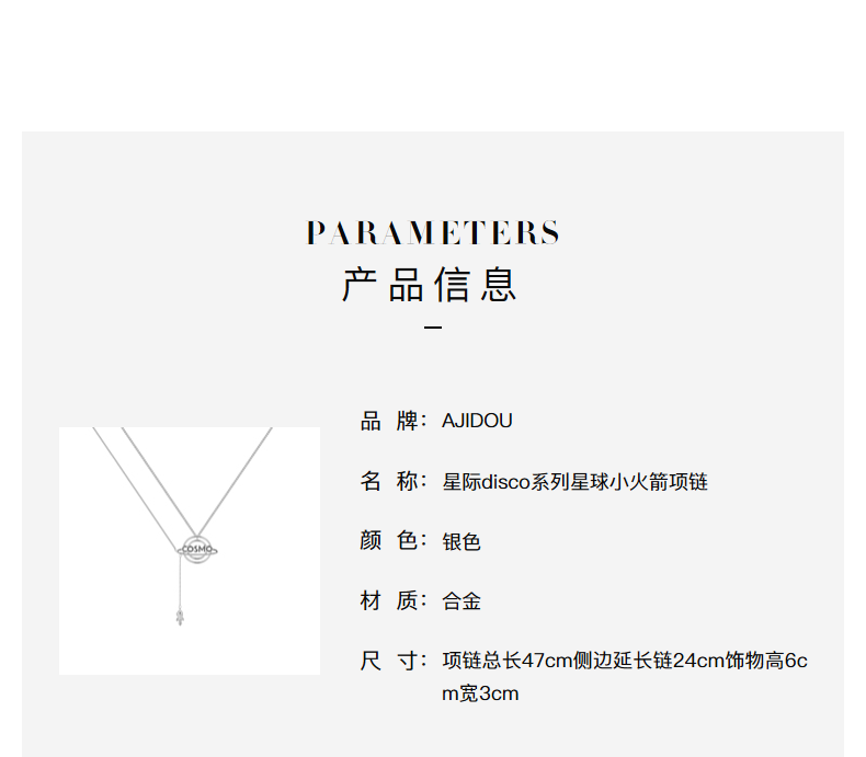 Aji Doudou Starco Series Series Planetary маленькое ракетное ожерелье Fun Styling Creative Design Chain