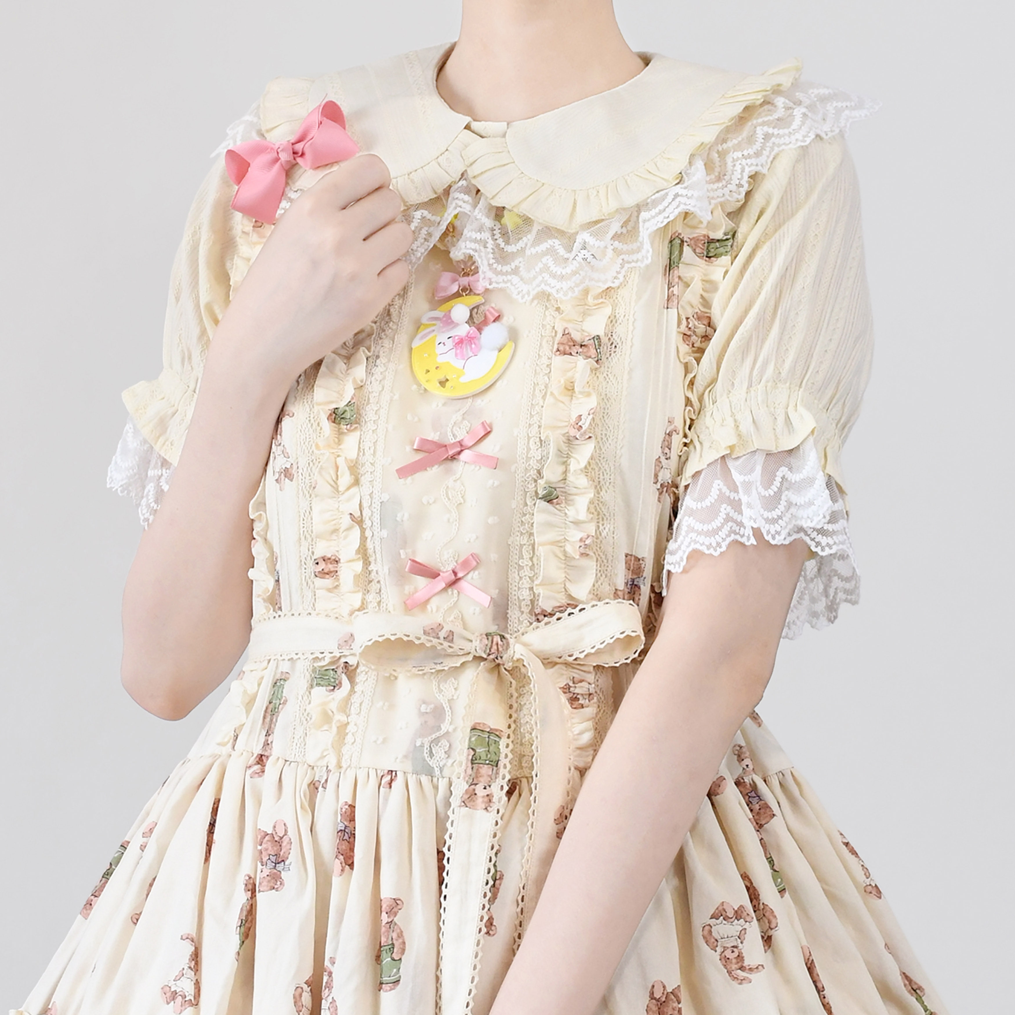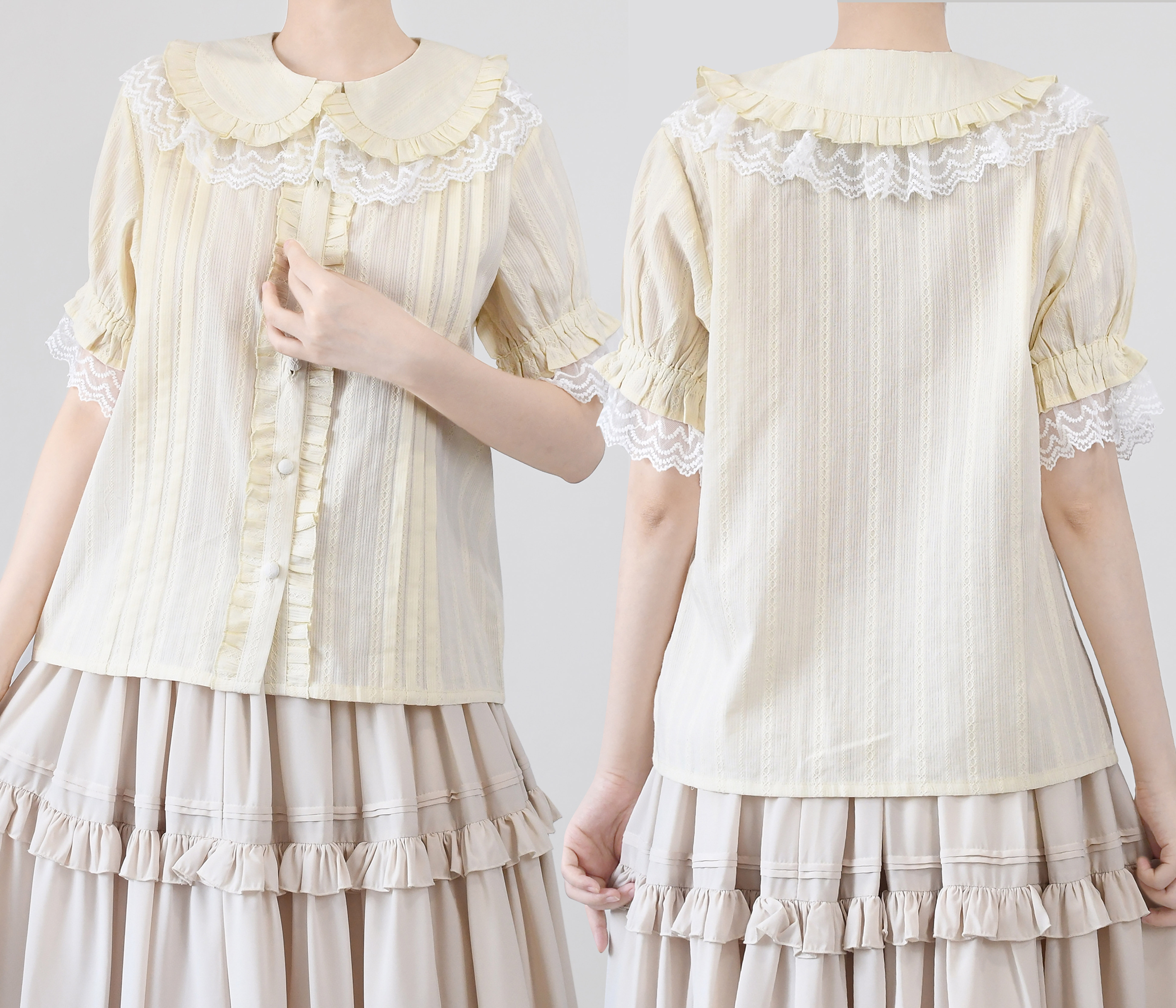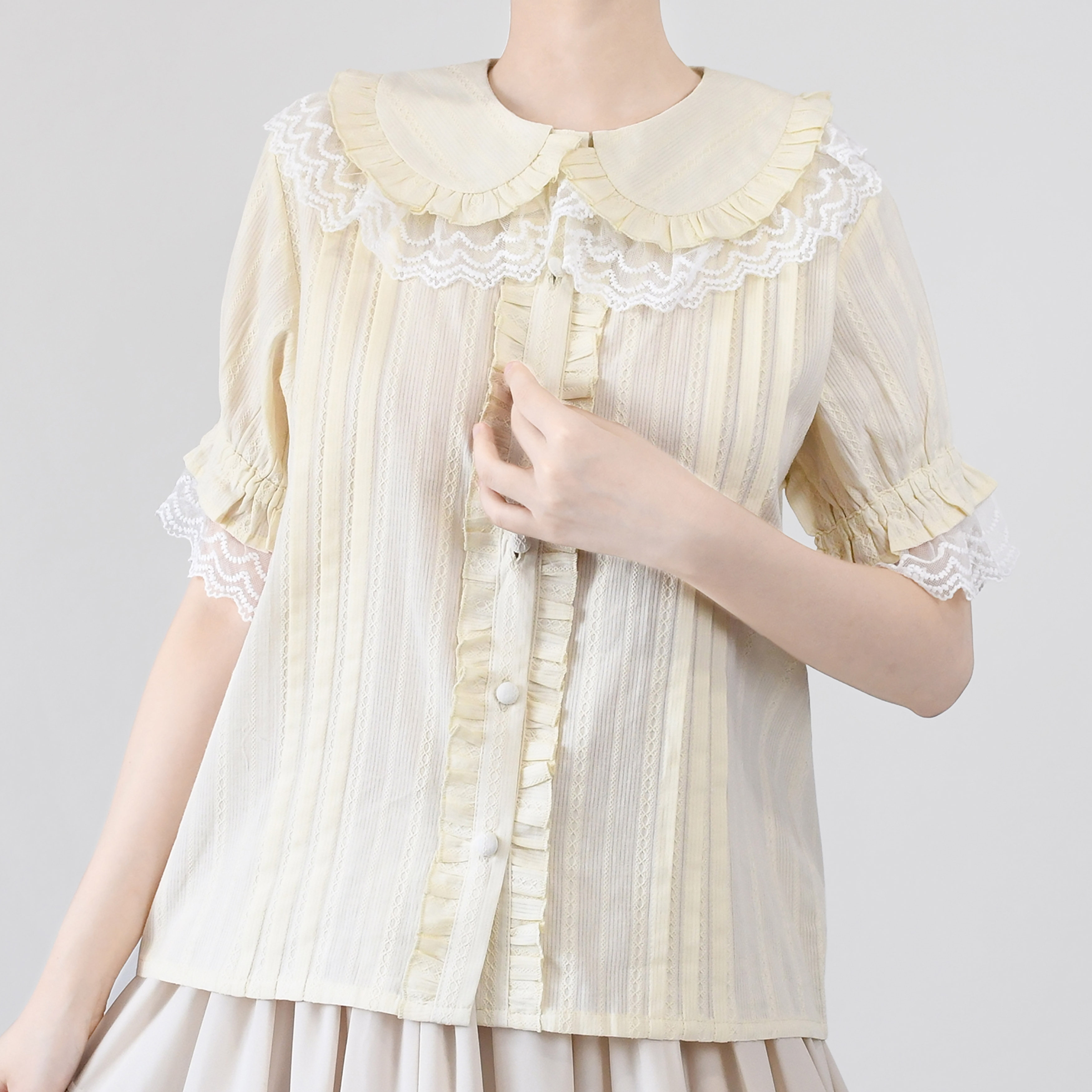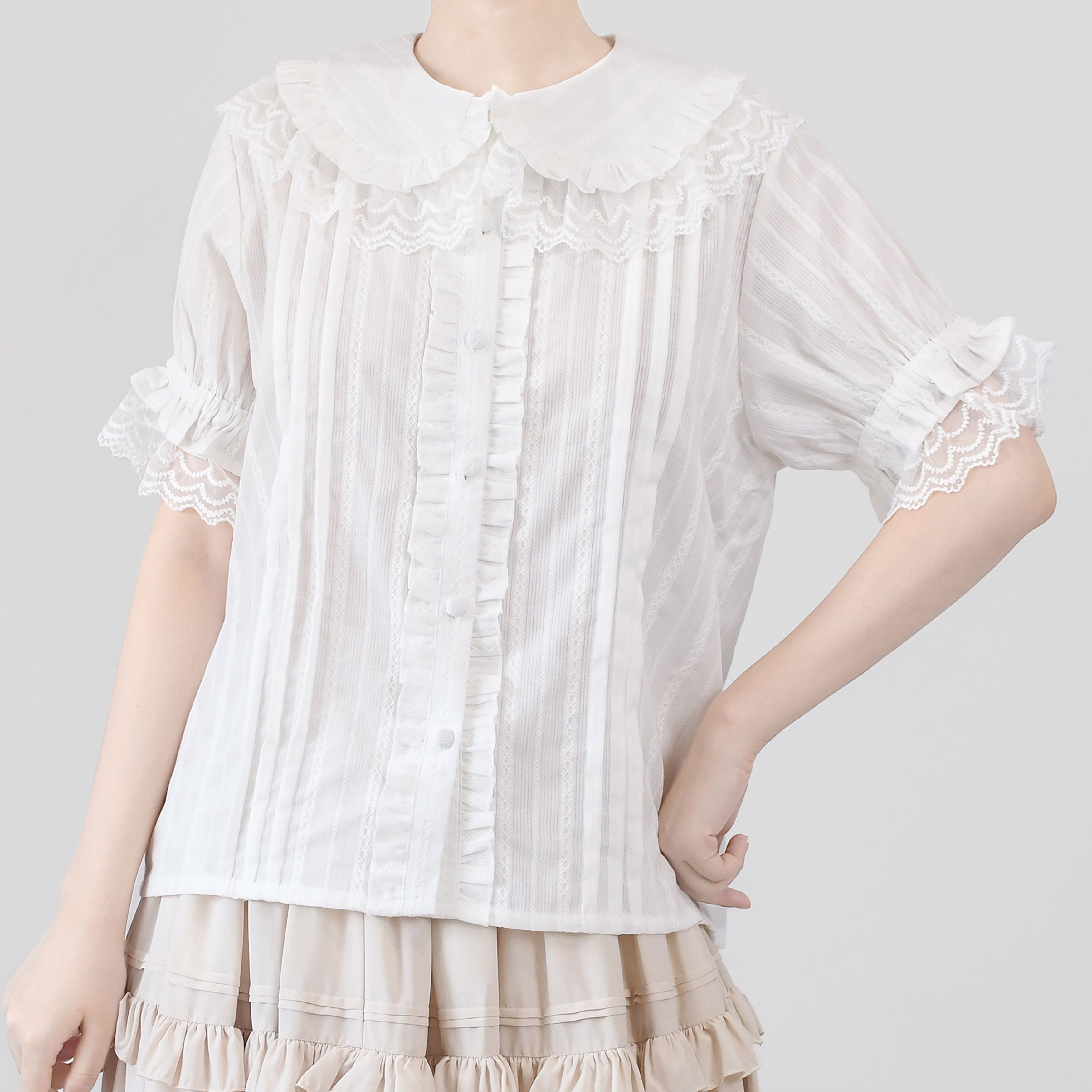 Кремовая рубашка, короткий рукав, стиль Лолита