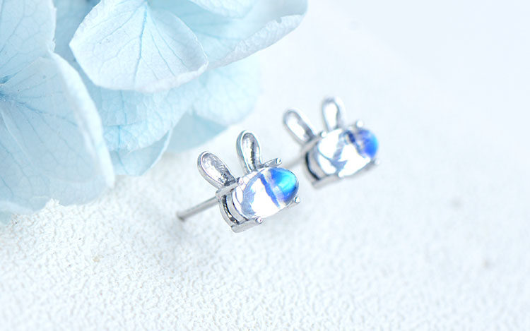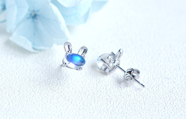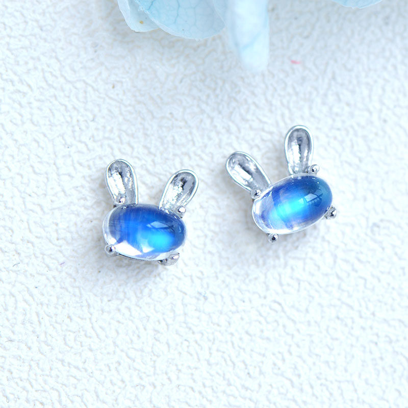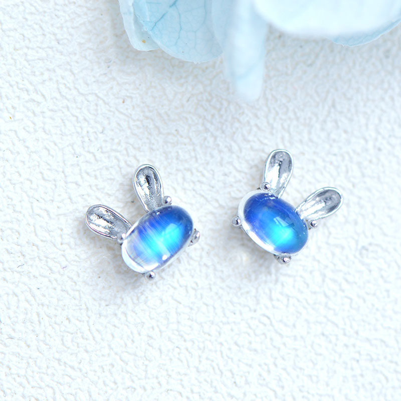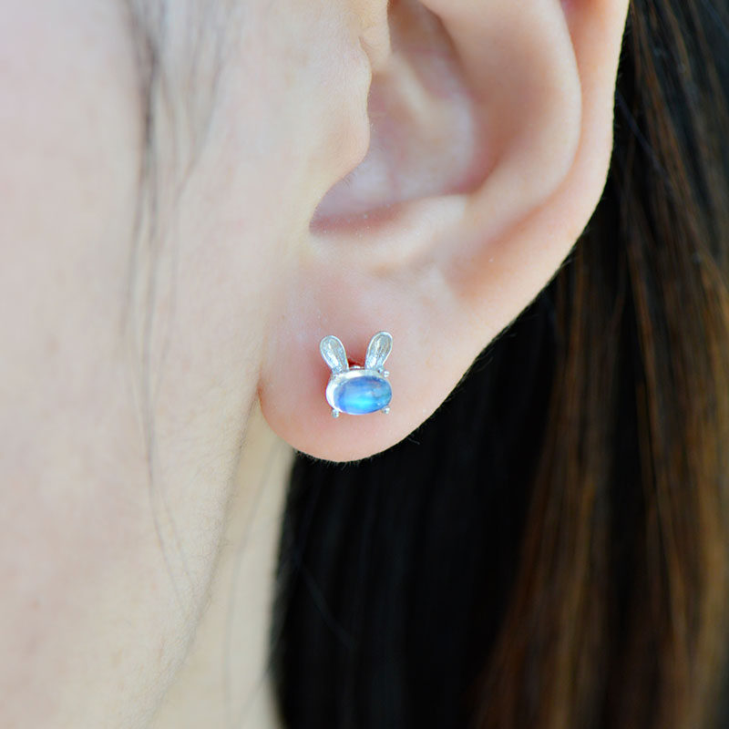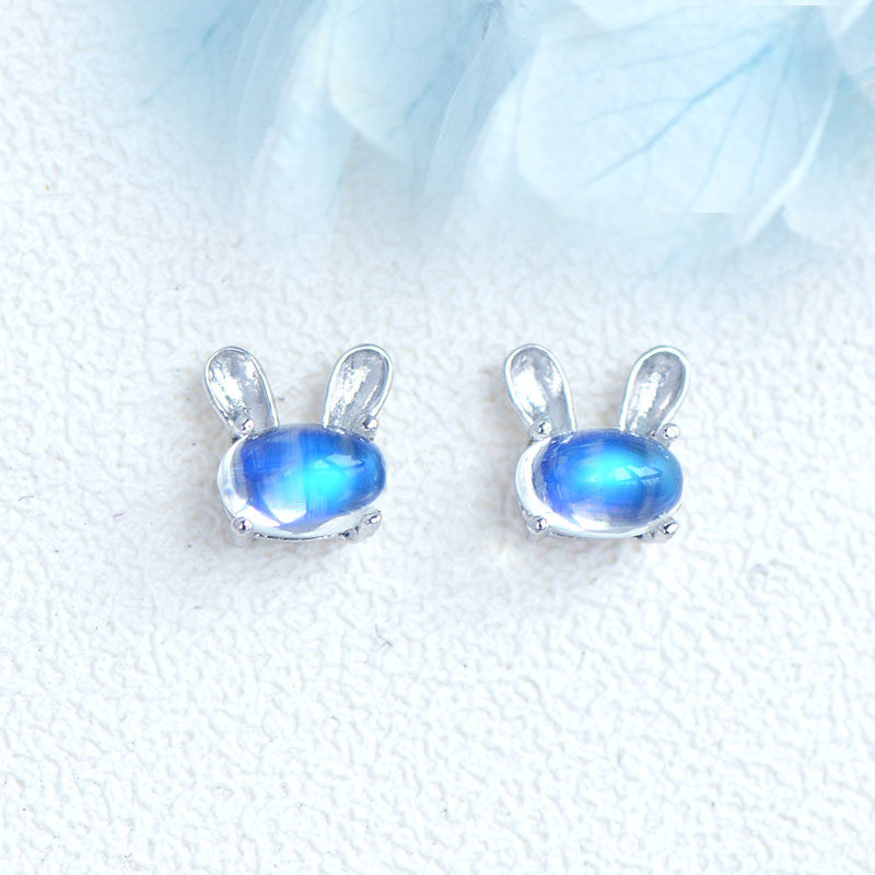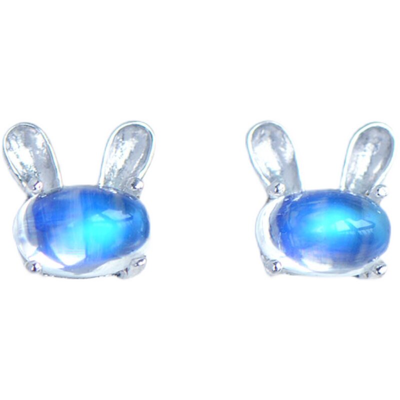 Натуральный кролик, милые гипоаллергенные серьги, лунный камень, простой и элегантный дизайн, с драгоценным камнем