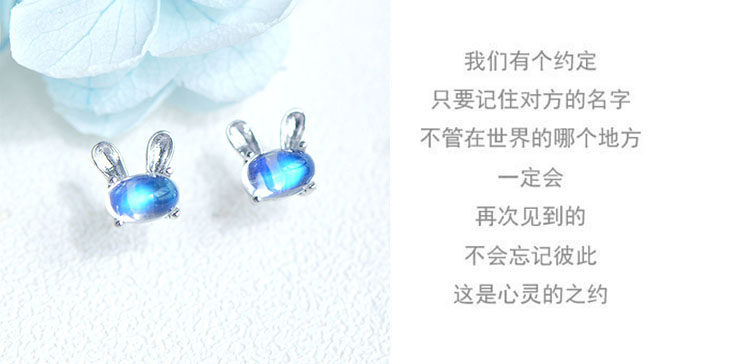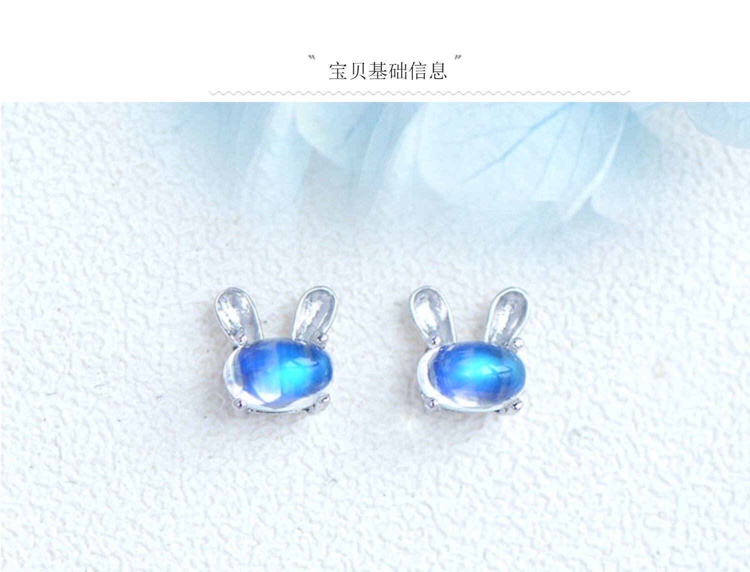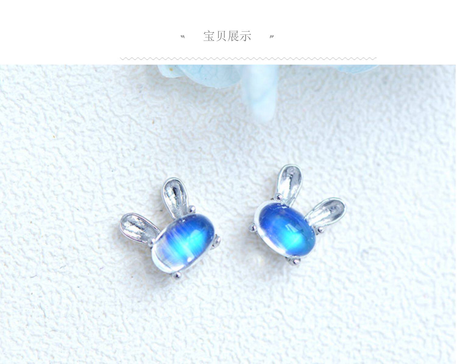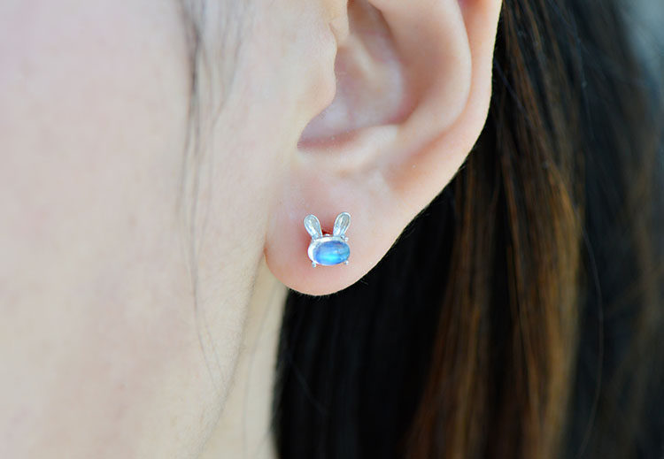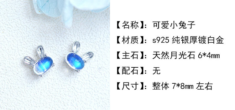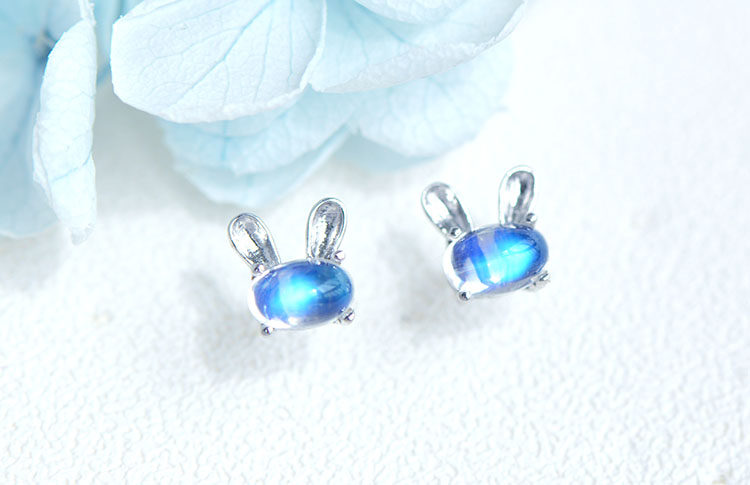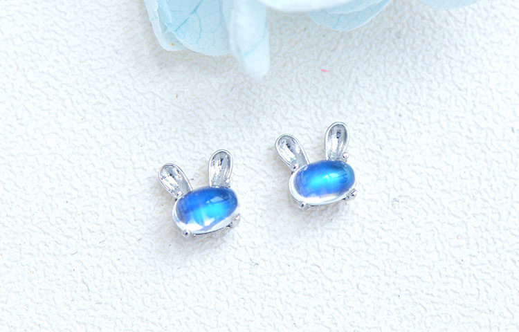 Натуральный кролик, милые гипоаллергенные серьги, лунный камень, простой и элегантный дизайн, с драгоценным камнем