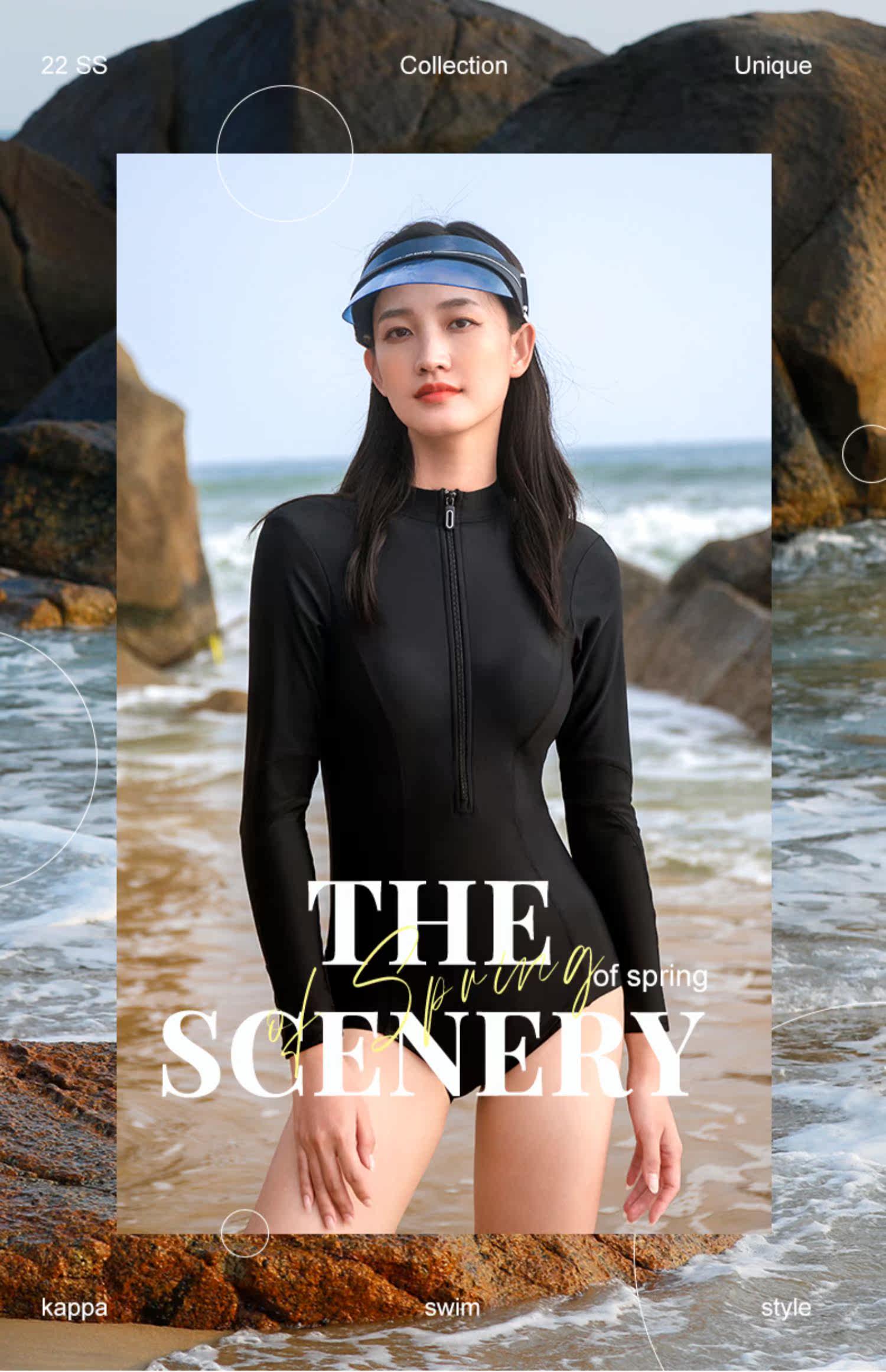 Kappa цельный купальник женский с длинными рукавами солнцезащитный треугольник горячий источник новый чехол для похудения живота профессиональный купальник