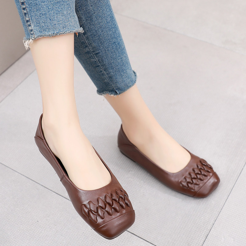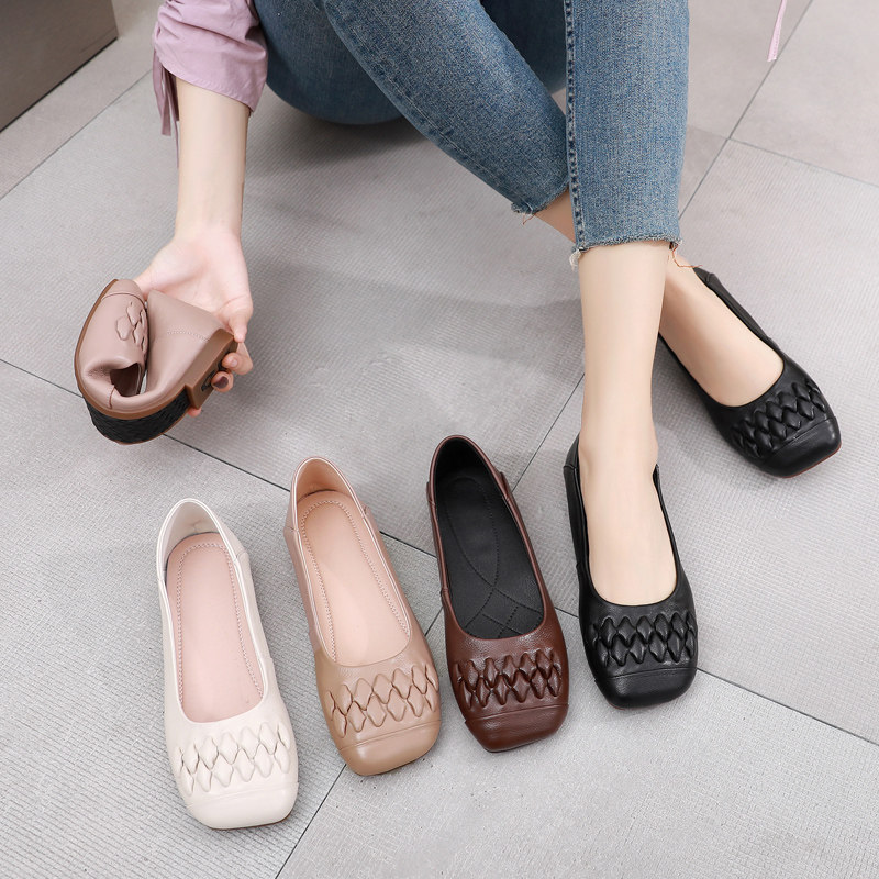 Весенняя обувь с низким вырезом для отдыха для матери, из натуральной кожи, мягкая подошва, большой размер