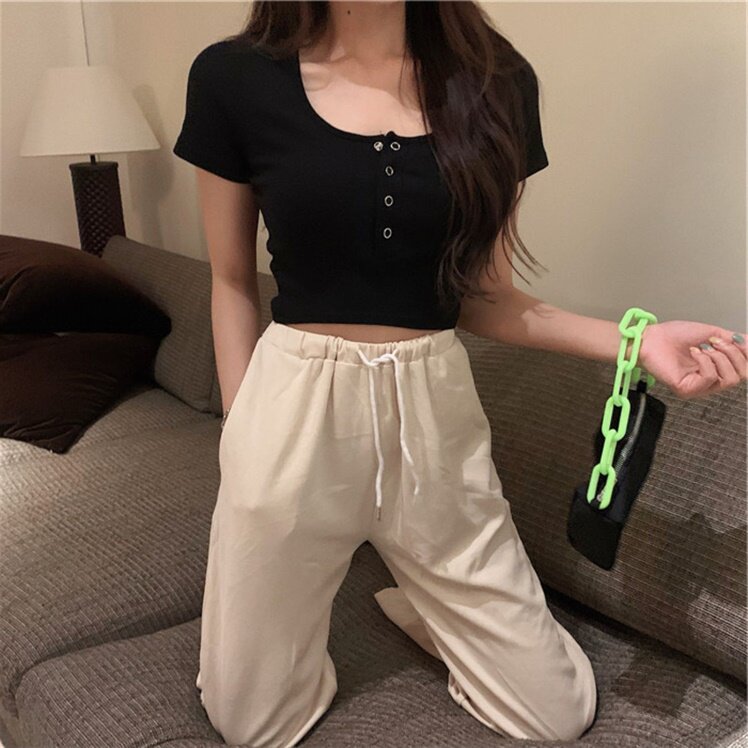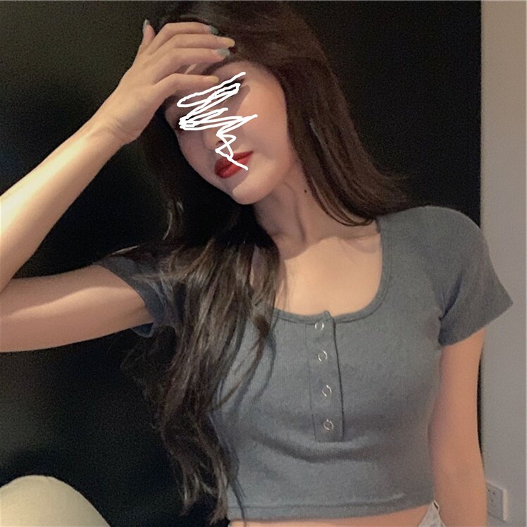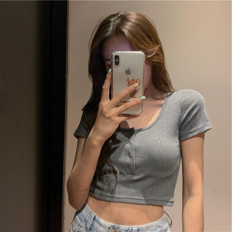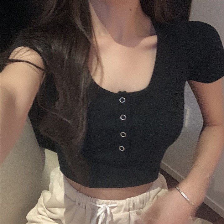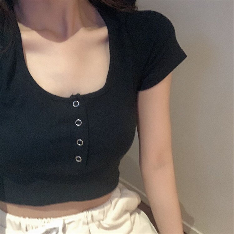 Короткая летняя футболка с круглым воротником, по фигуре, короткий рукав, с рукавом