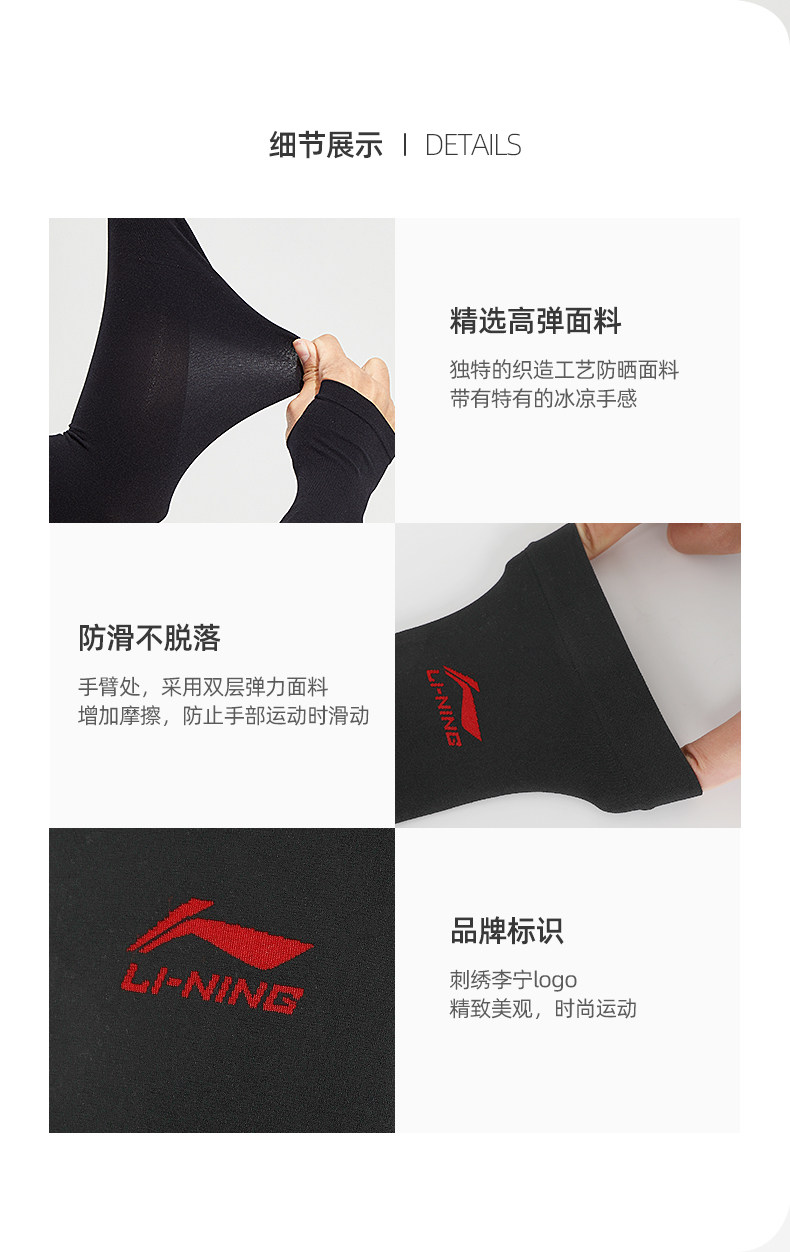 Li Ning, защитный рукав, шелковые нарукавники, летние спортивные дорожные перчатки, защита от ультрафиолета, защита от солнца, для бега