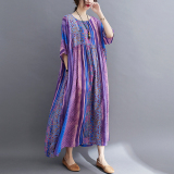 Летняя длинная юбка с круглым воротником, платье, сезон 2021, большой размер, свободный крой, средней длины