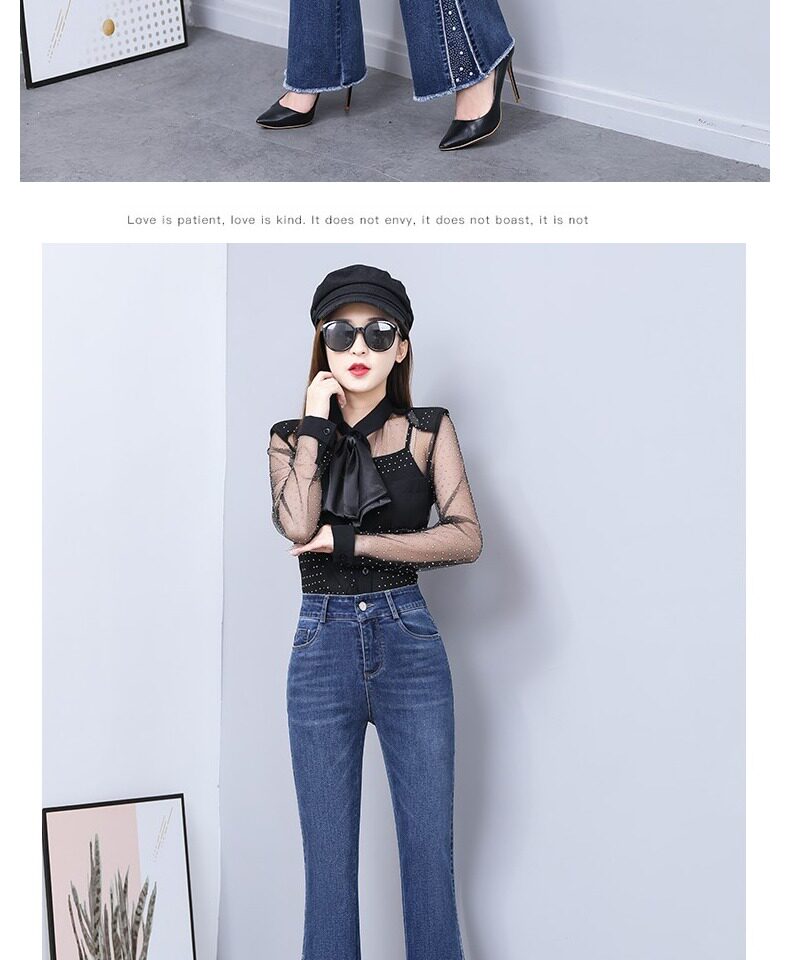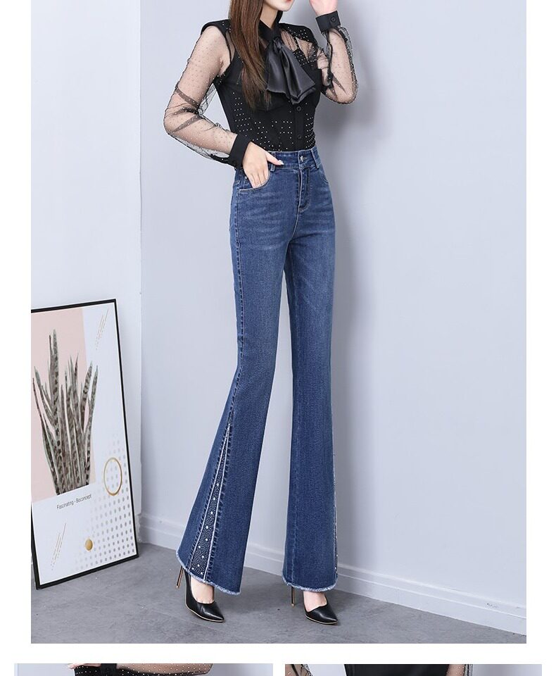 Осенние джинсы, летние штаны, приталенные штаны-клёш, 2024 года, высокая талия, свободный крой, по фигуре