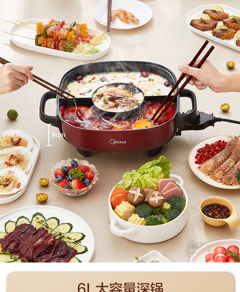 Midea Electric Hot Pot Conclric Circular Shabu -Shabu Многофункциональная бытовая электроэнергия вареное горячее жаркое безжилочное горшок Официальный флагман подлинный