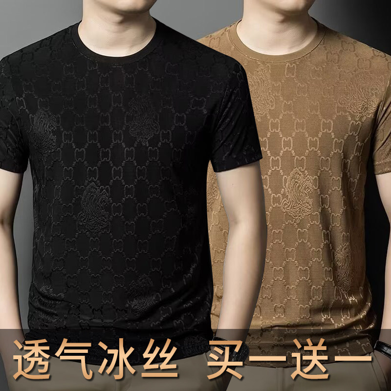 Шелковая модная трендовая быстросохнущая дышащая летняя футболка, короткий рукав, большой размер, облегающий крой