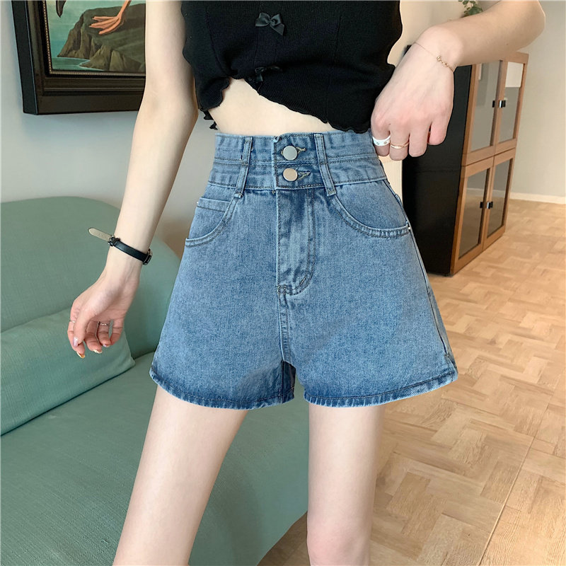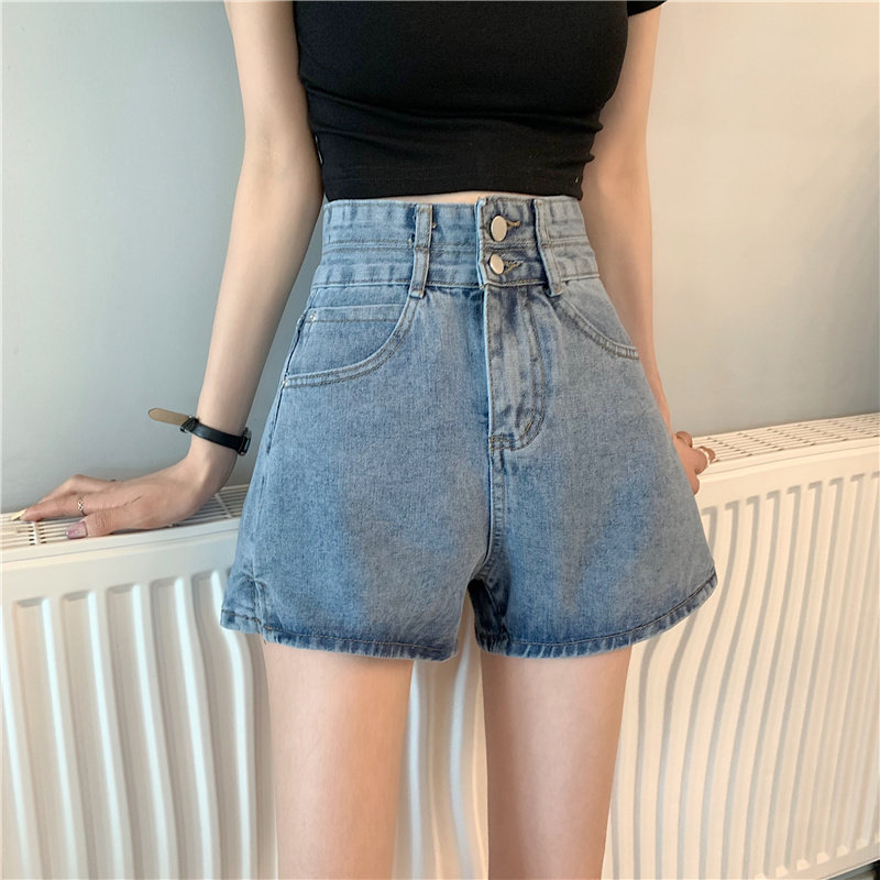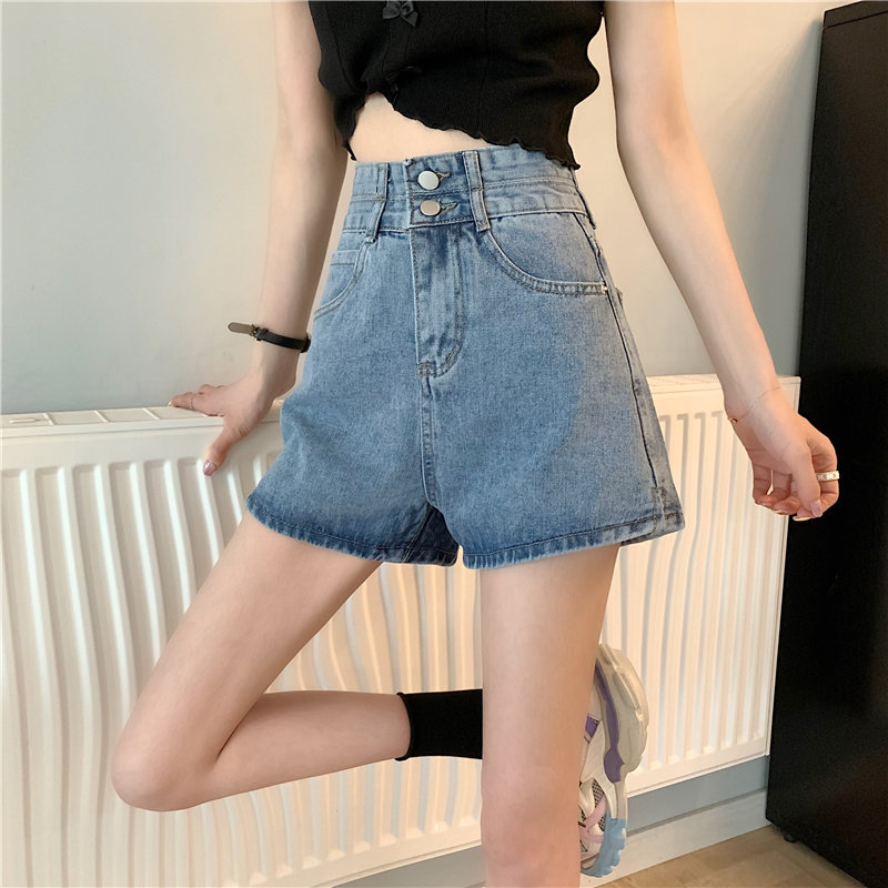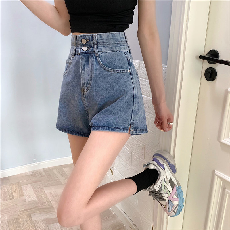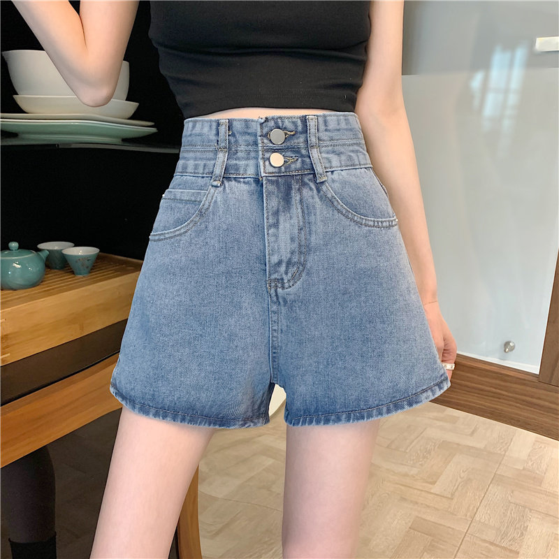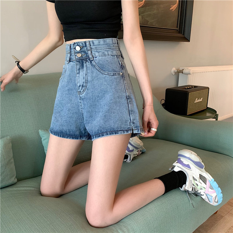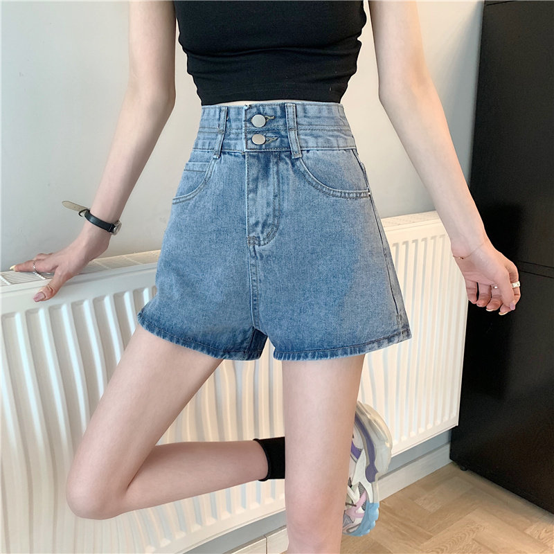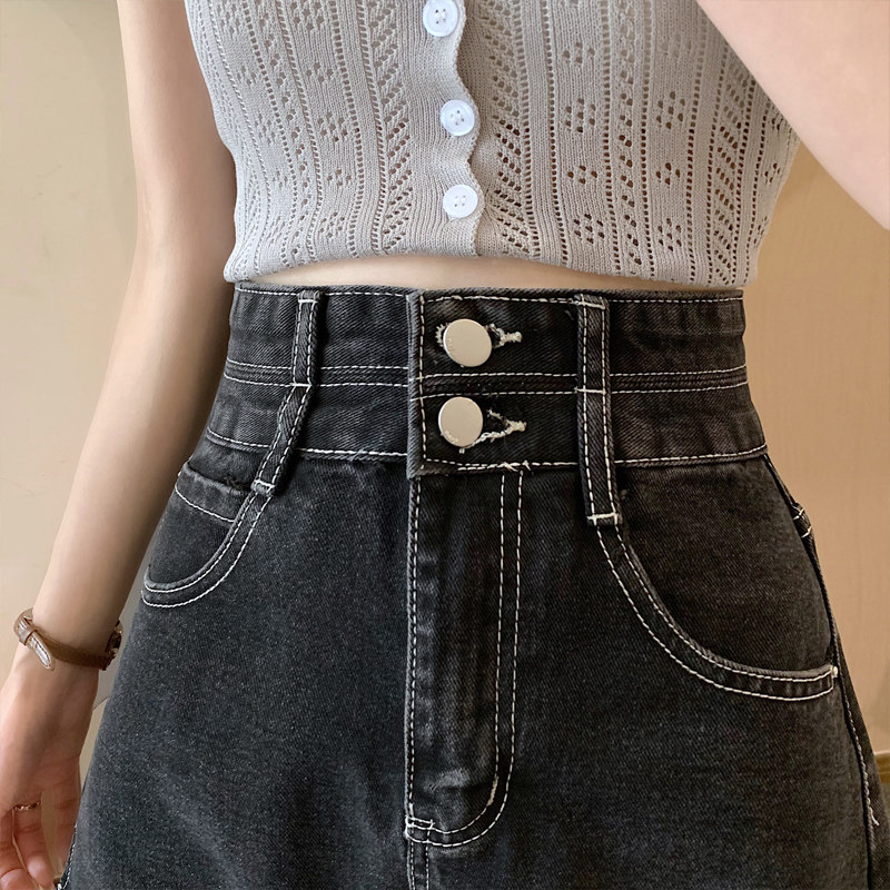 Летняя дизайнерская приталенная джинсовая юбка, шорты, штаны, в корейском стиле, коллекция 2022, тренд сезона, высокая талия, А-силуэт, свободный крой, большой размер