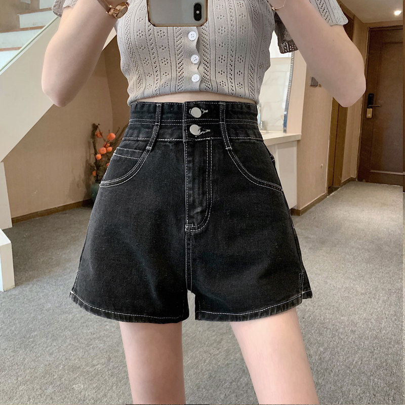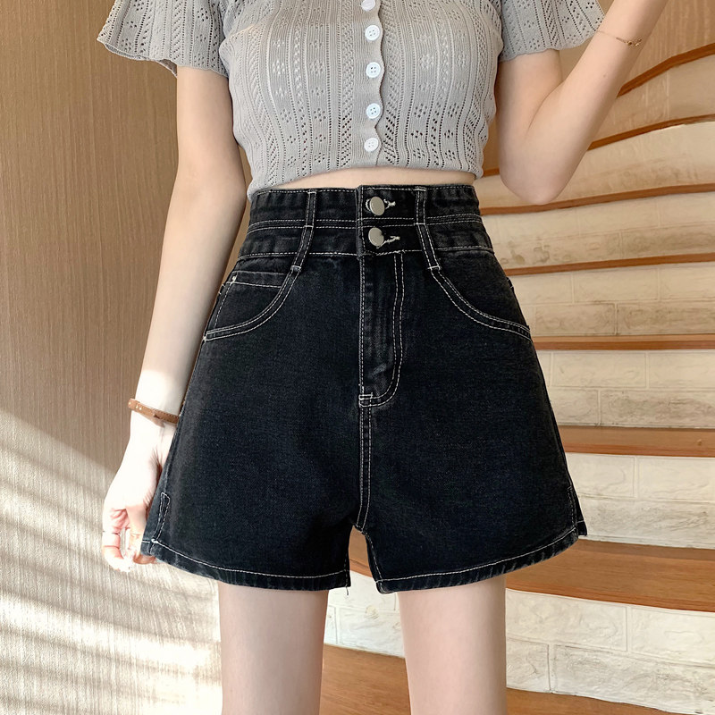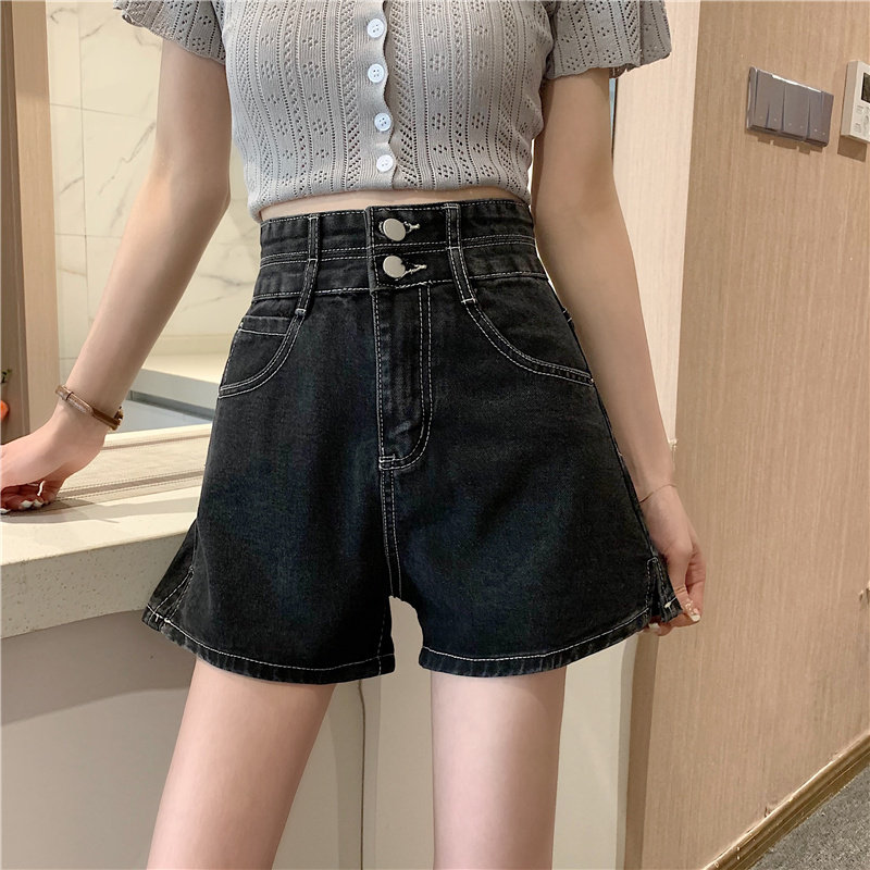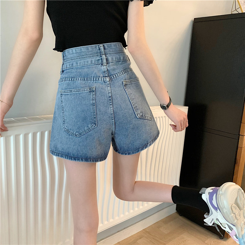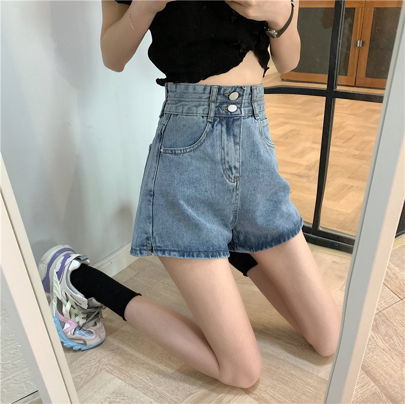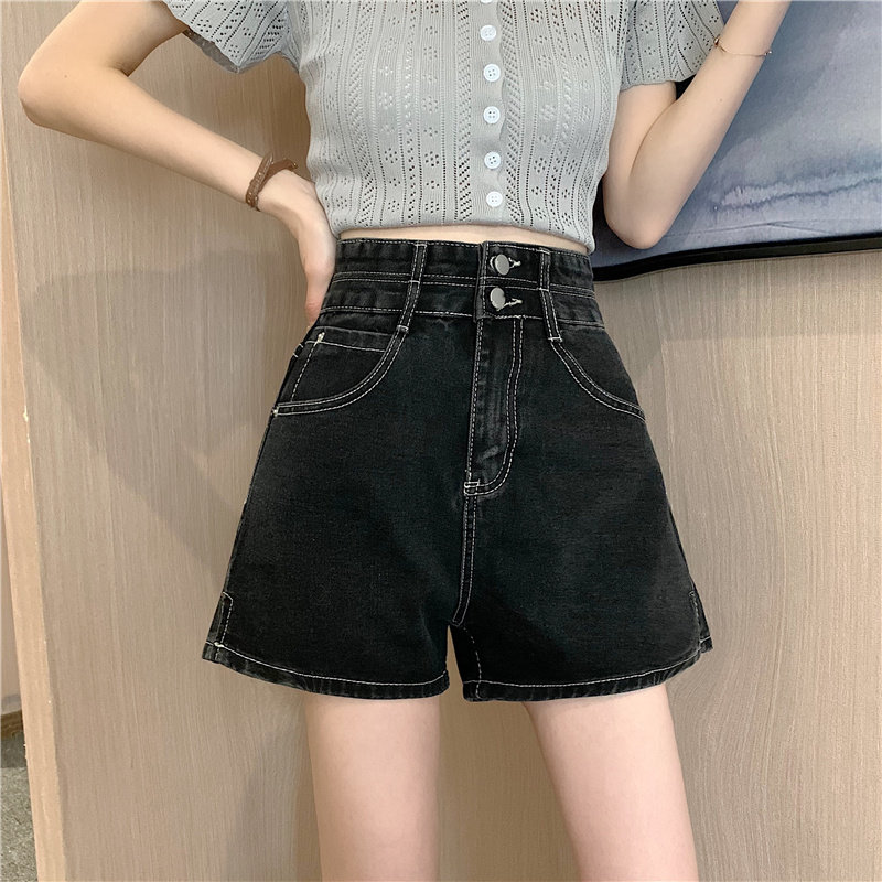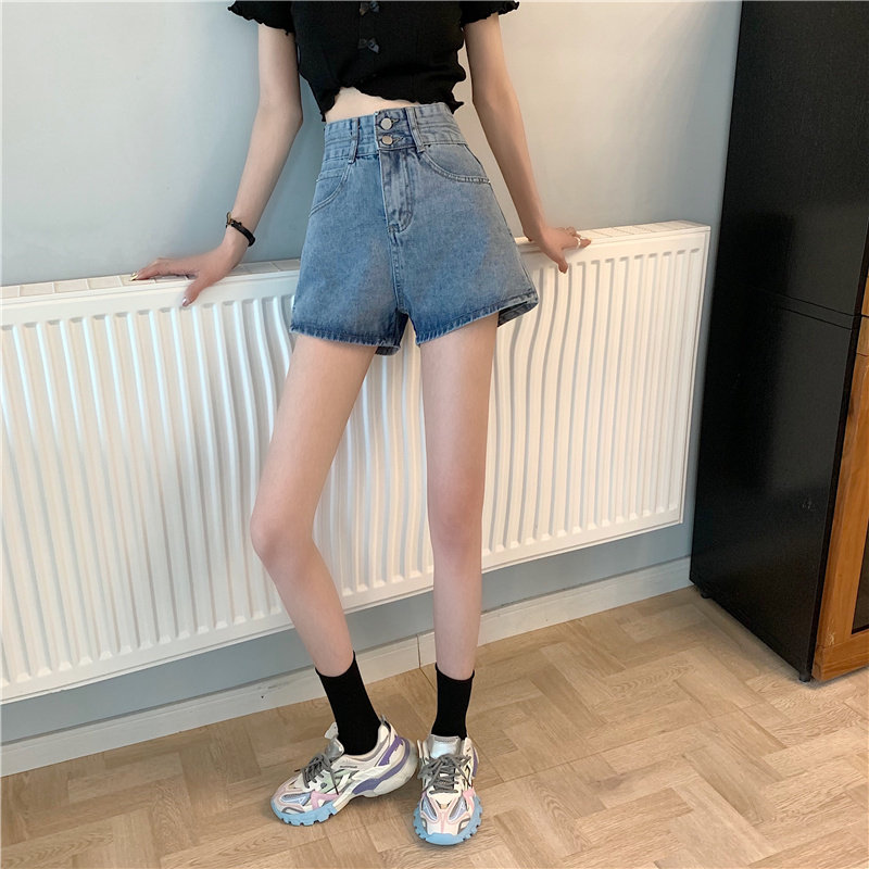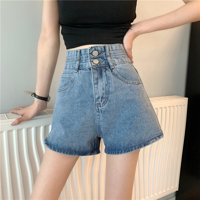 Летняя дизайнерская приталенная джинсовая юбка, шорты, штаны, в корейском стиле, коллекция 2022, тренд сезона, высокая талия, А-силуэт, свободный крой, большой размер