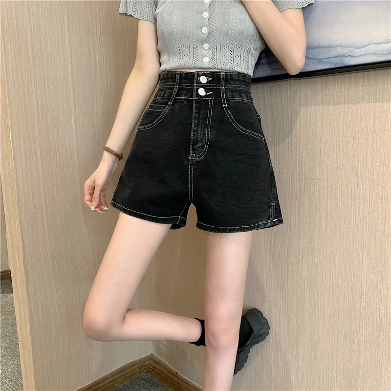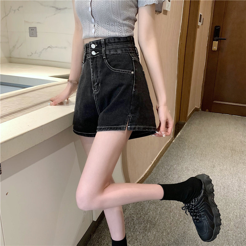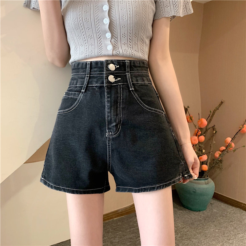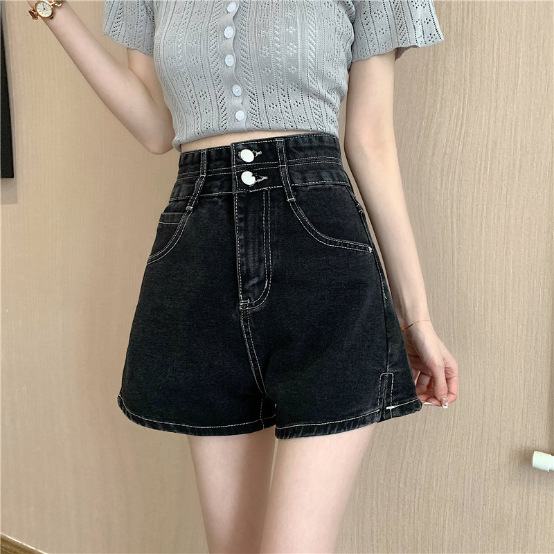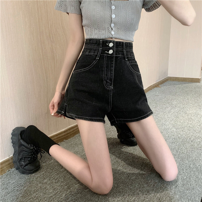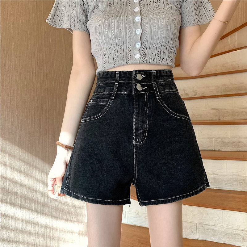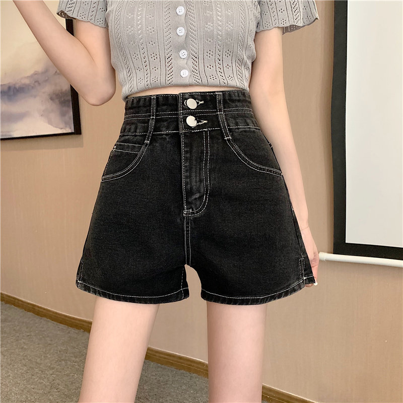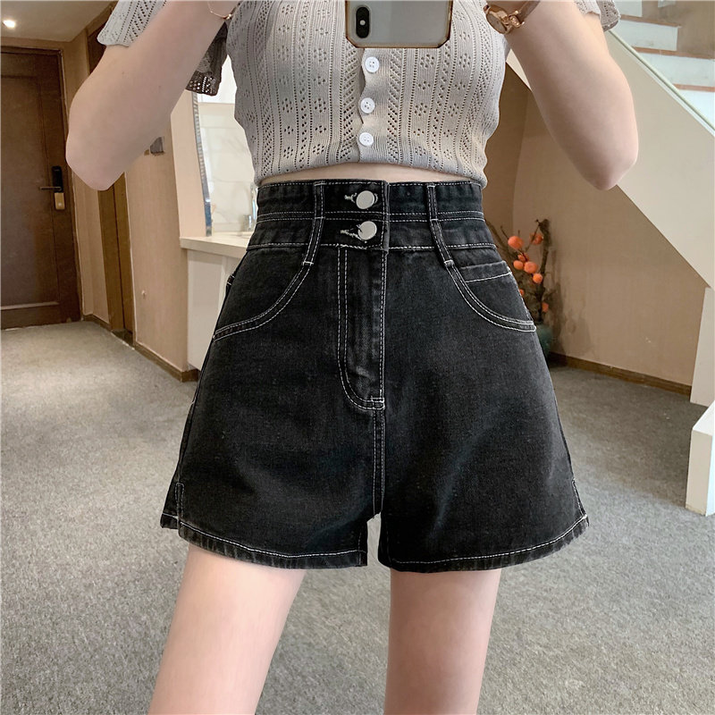 Летняя дизайнерская приталенная джинсовая юбка, шорты, штаны, в корейском стиле, коллекция 2022, тренд сезона, высокая талия, А-силуэт, свободный крой, большой размер