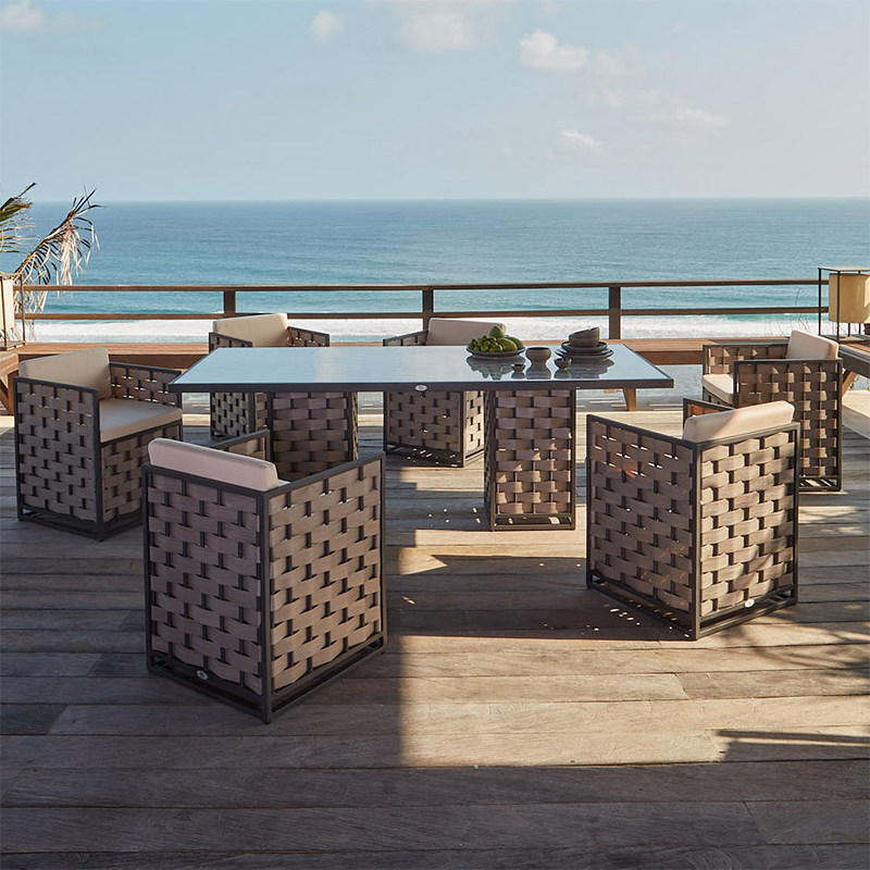 Открытый на открытом воздухе -воздушная лоза, стол и стул Комбинированный сад сад двор солнечный свет.