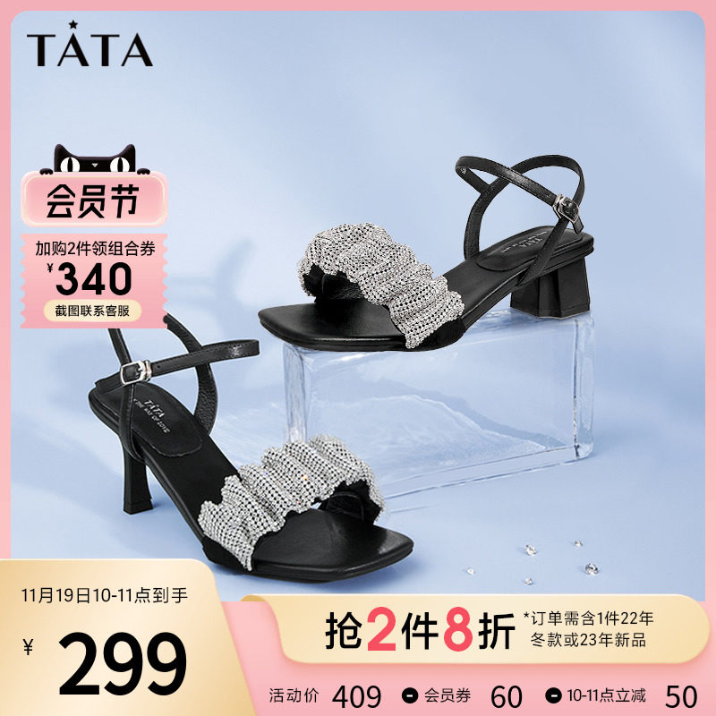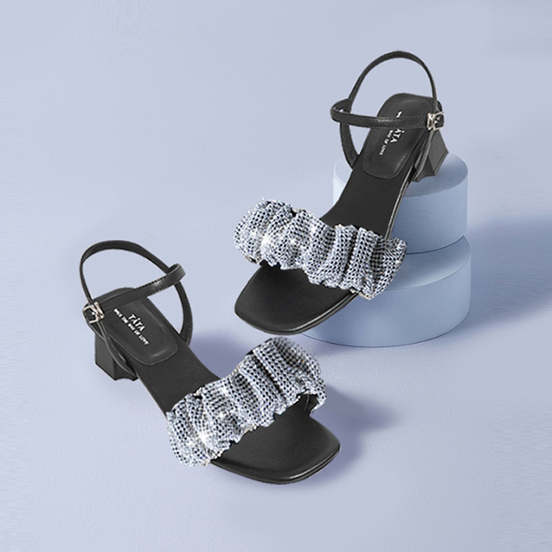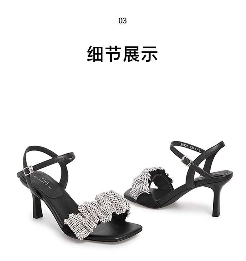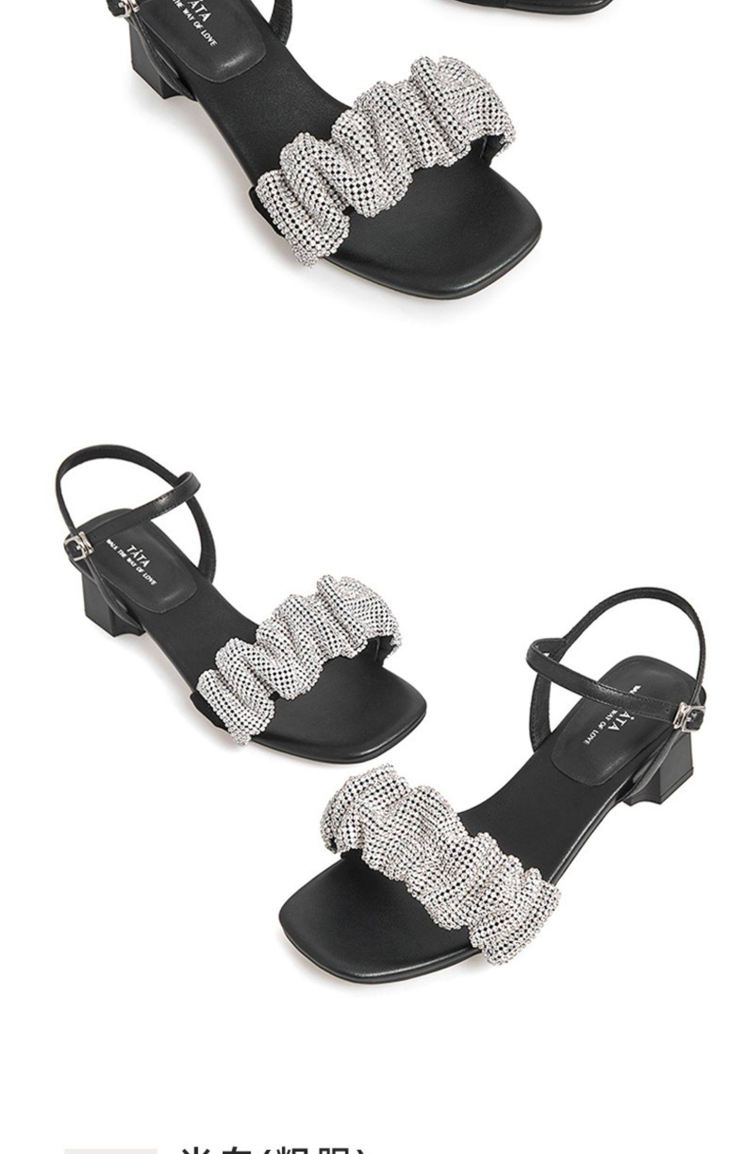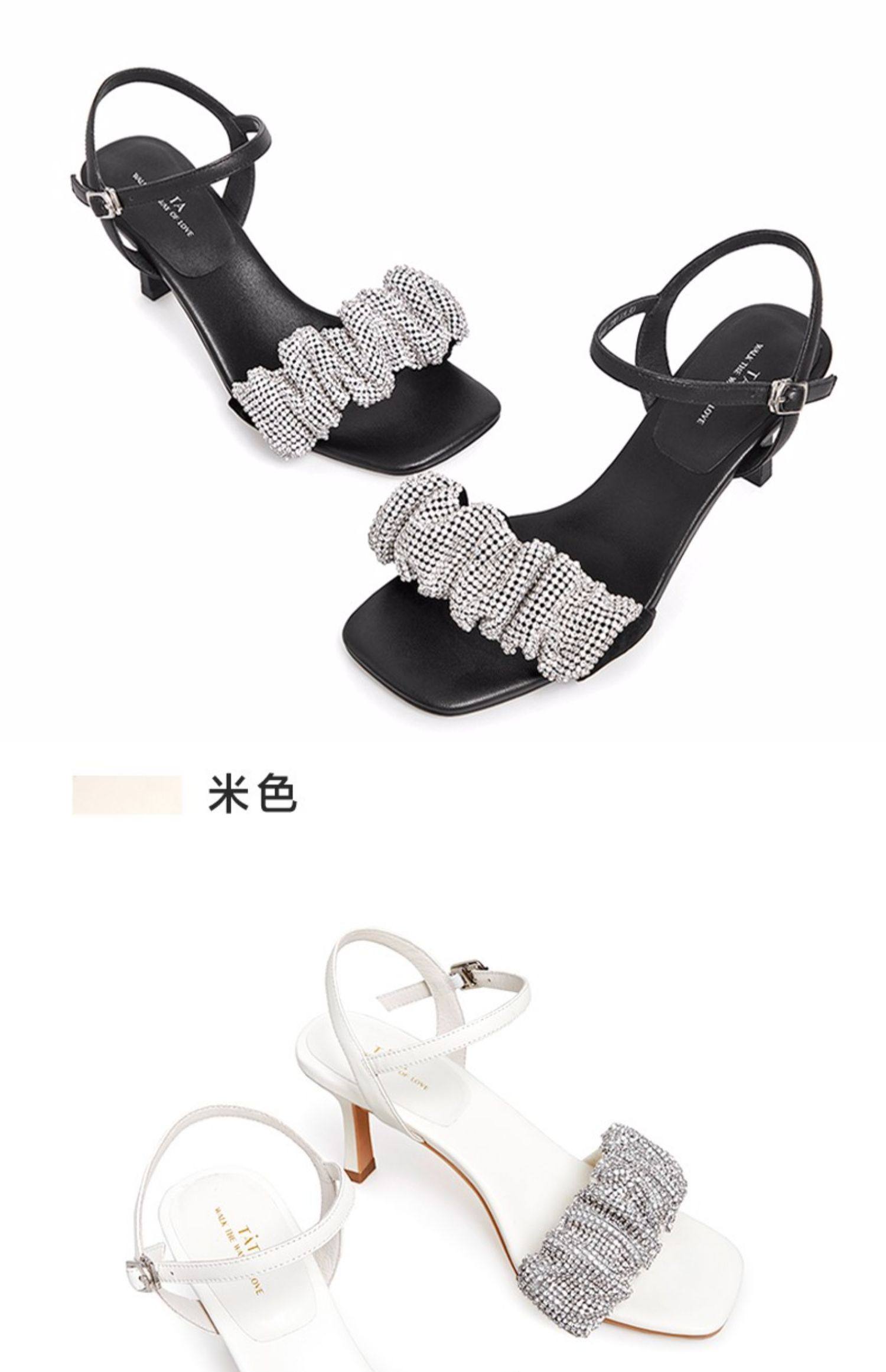 Тата, ее складки со стразами, с тонкими каблуками, высокие открытые сандалии с открытыми сандалиями.