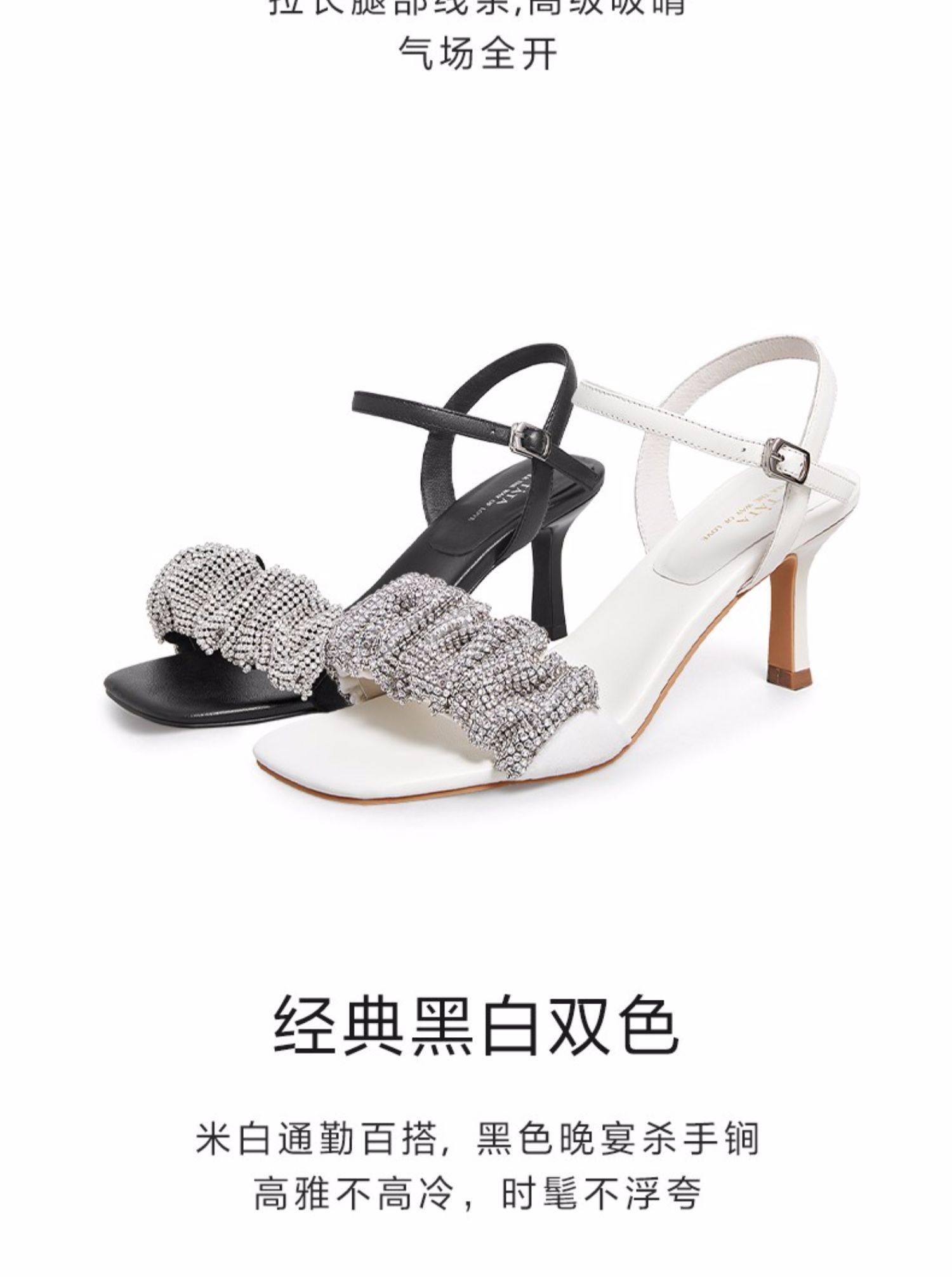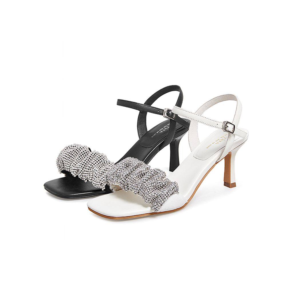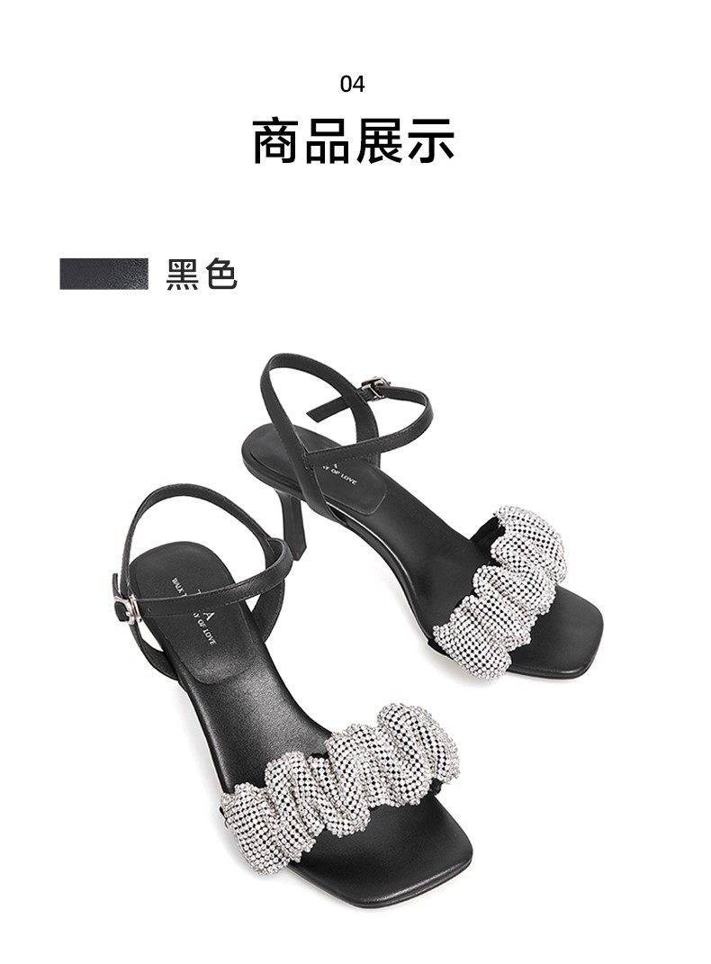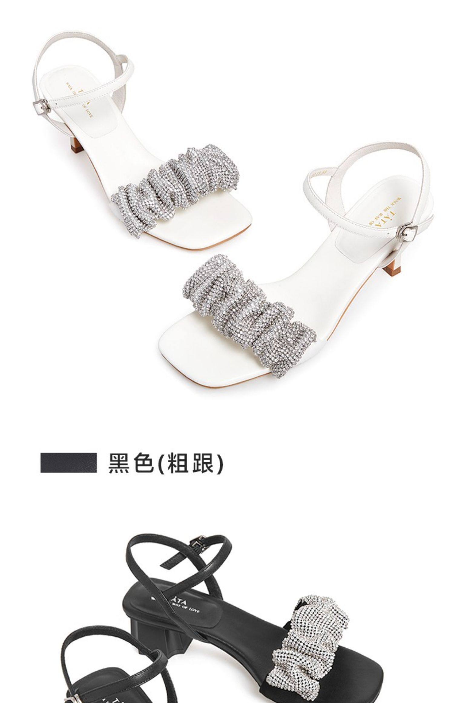 Тата, ее складки со стразами, с тонкими каблуками, высокие открытые сандалии с открытыми сандалиями.