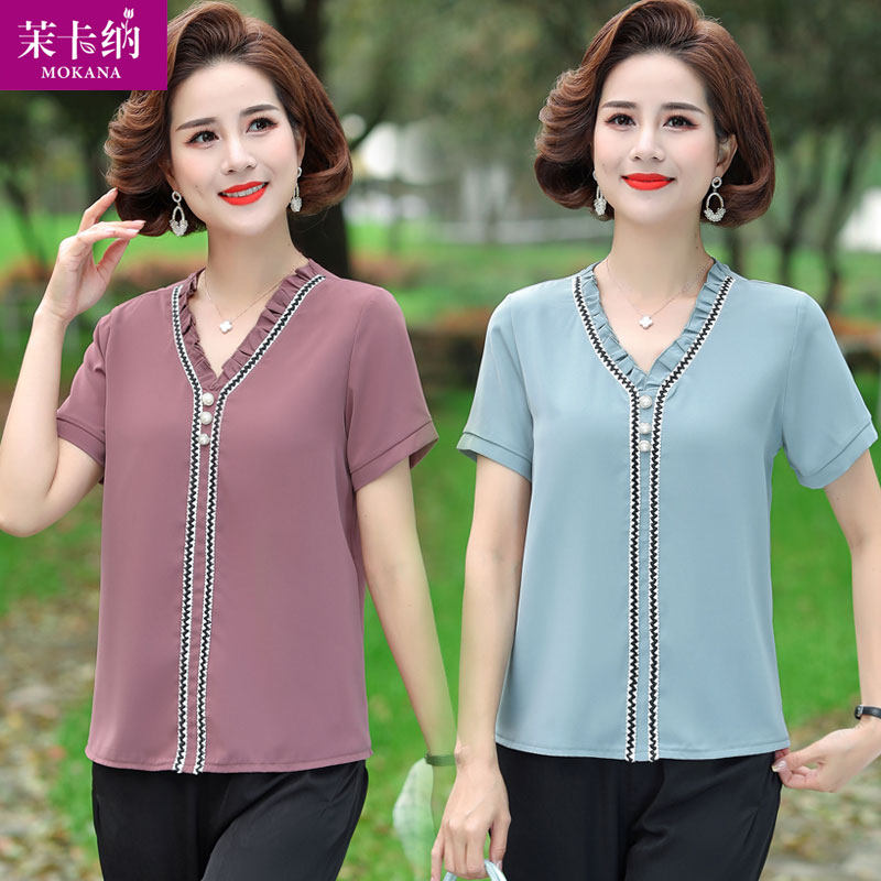 Шифоновая летняя одежда для матери, нарукавники для пожилых людей, комплект на день матери, короткий рукав, для среднего возраста, 40 лет