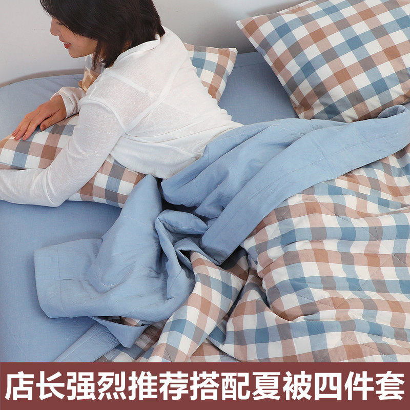 - 1,5-метровая крышка кровати с четырьмя частями [Летнее стеганое одеяло 200*230/Стандартный 150*200+25/Корпус наволота одна пара]