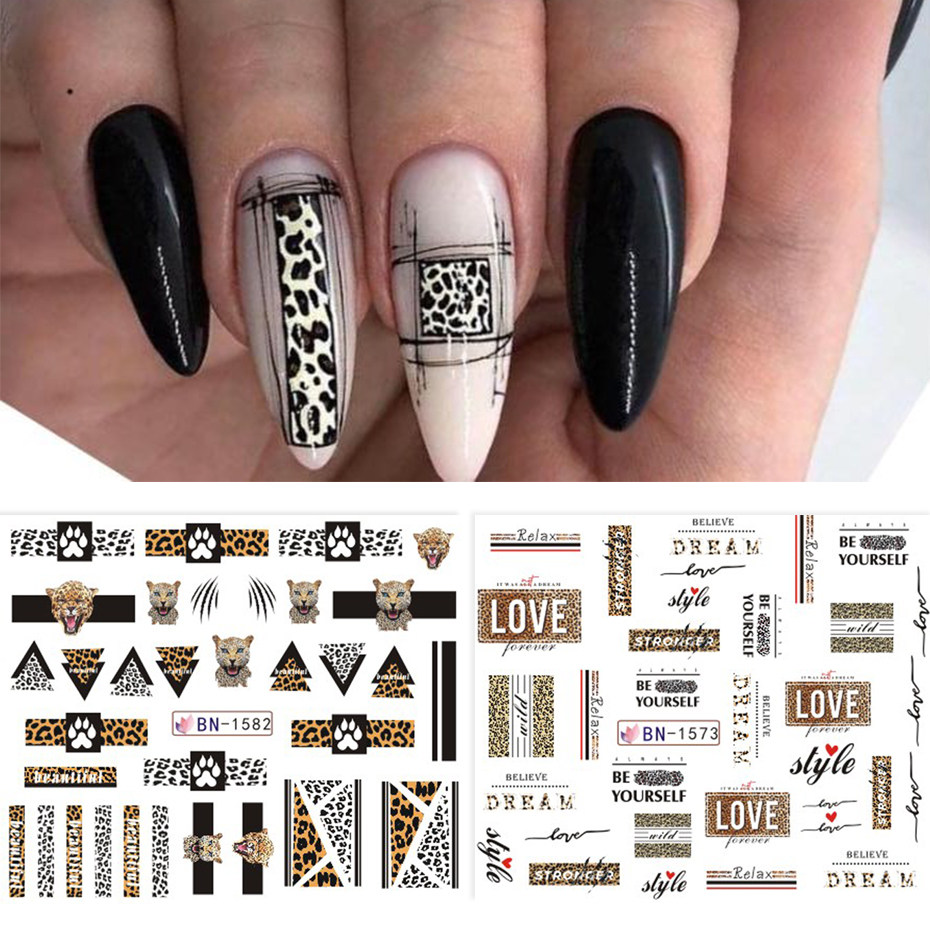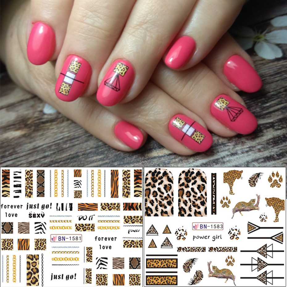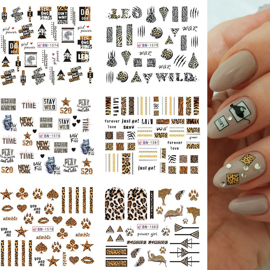 Леопардовый стикер для ногтей, сексуальные дикие животные, водная наклейка, буквы, геометрический единорог, фламинго, цветок, мультяшный декор