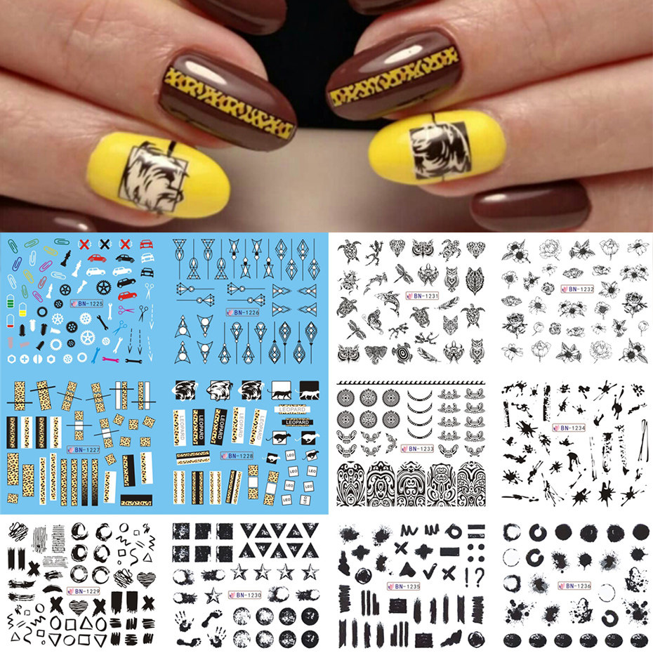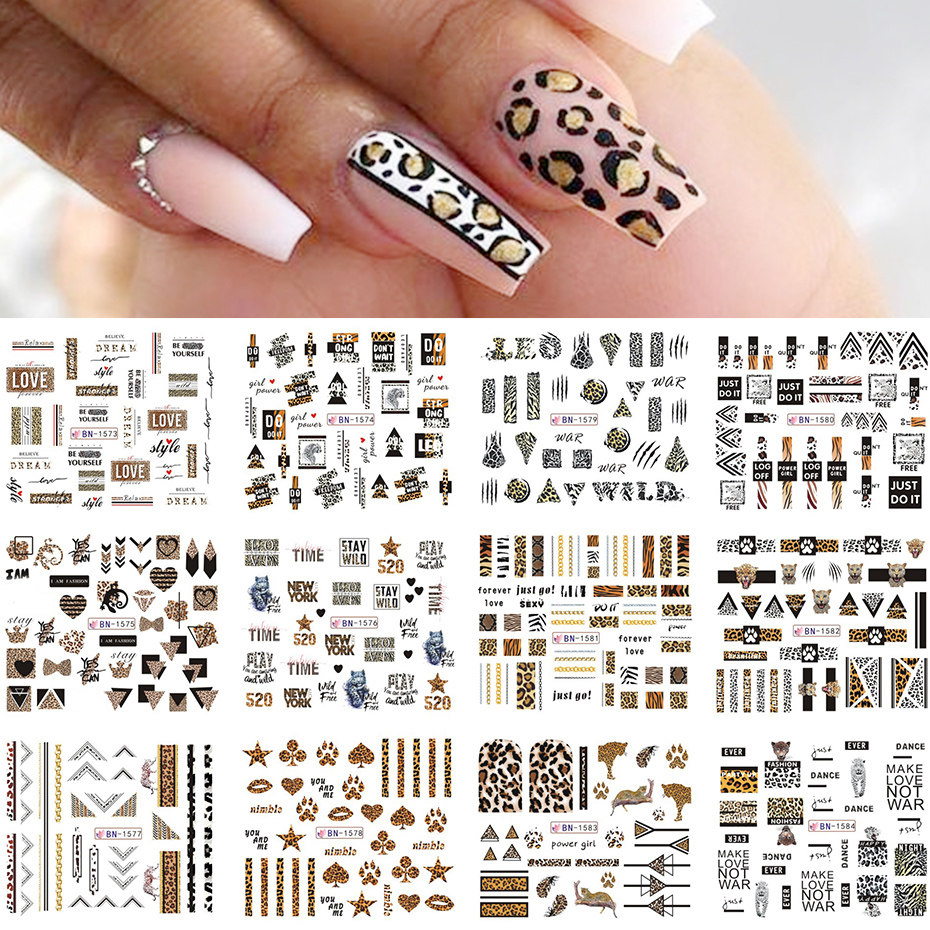 12 шт., наклейка для ногтей с леопардовым принтом, сексуальные дикие животные, водная наклейка, буквы, геометрический Единорог, цветок фламинго, мультяшный декор, SABN1573-1584