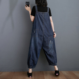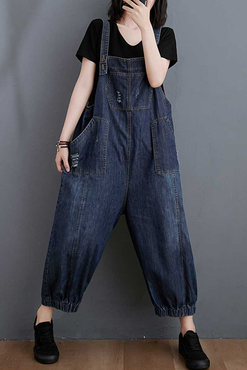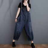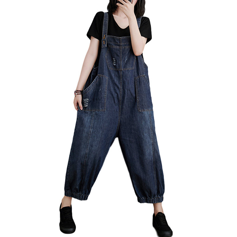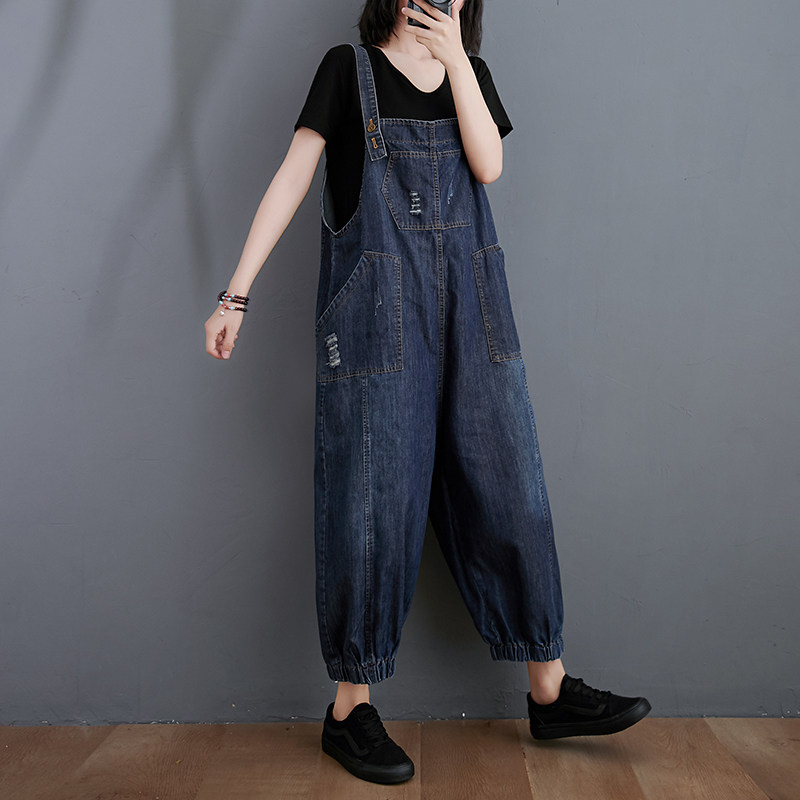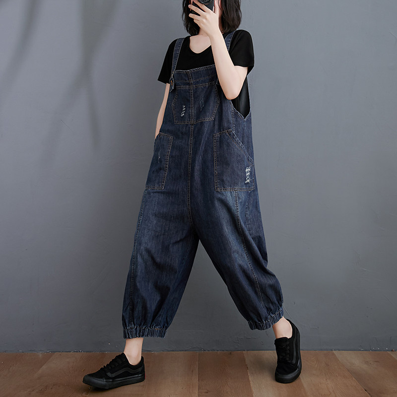 Джинсовый комбинезон, штаны, летняя одежда, большой размер, свободный крой, в западном стиле, коллекция 2021