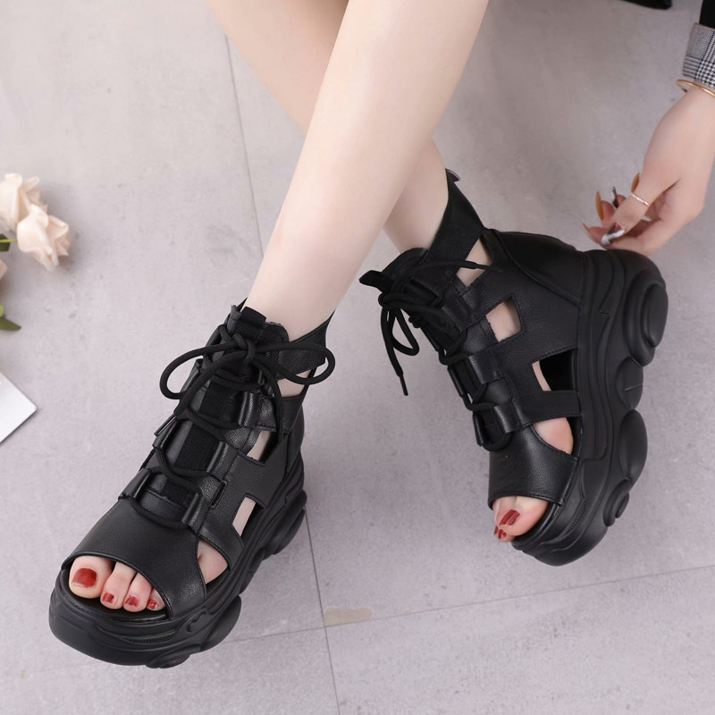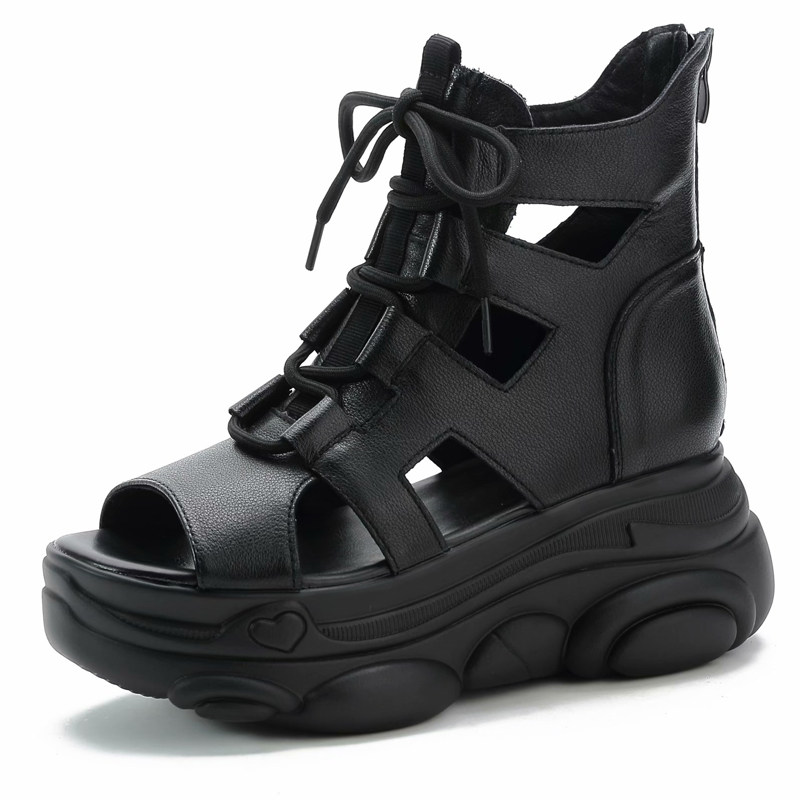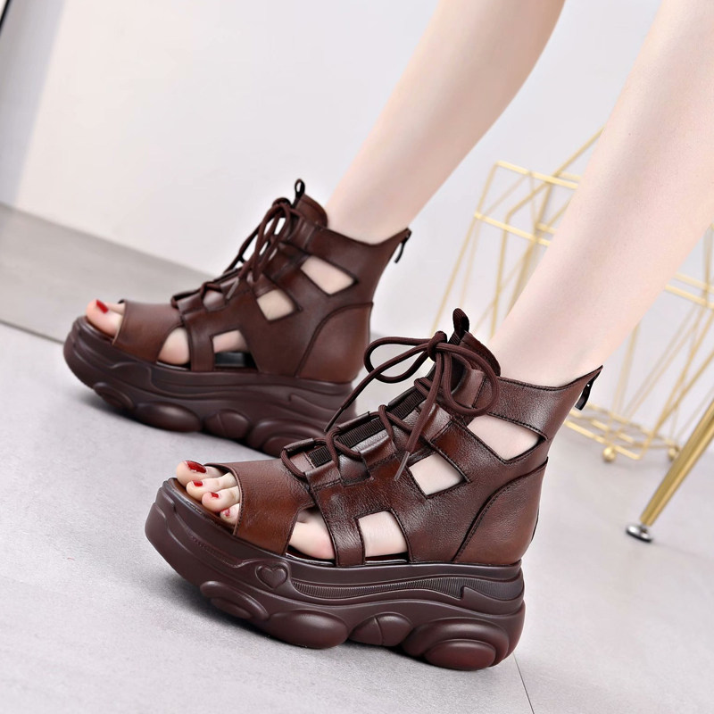Высокие сандалии для отдыха, сапоги на платформе, из натуральной кожи